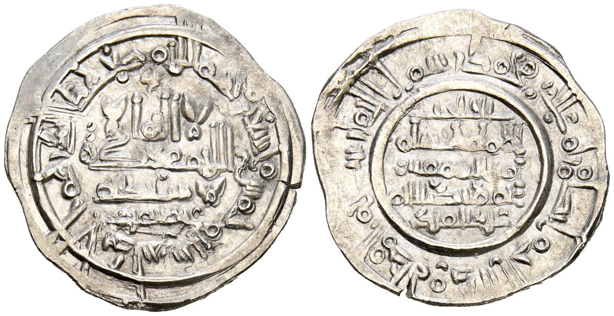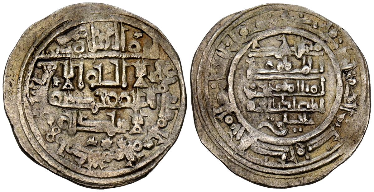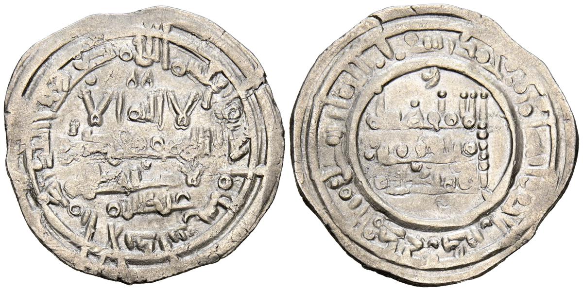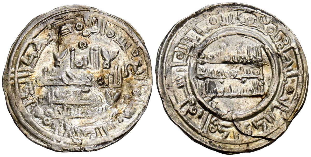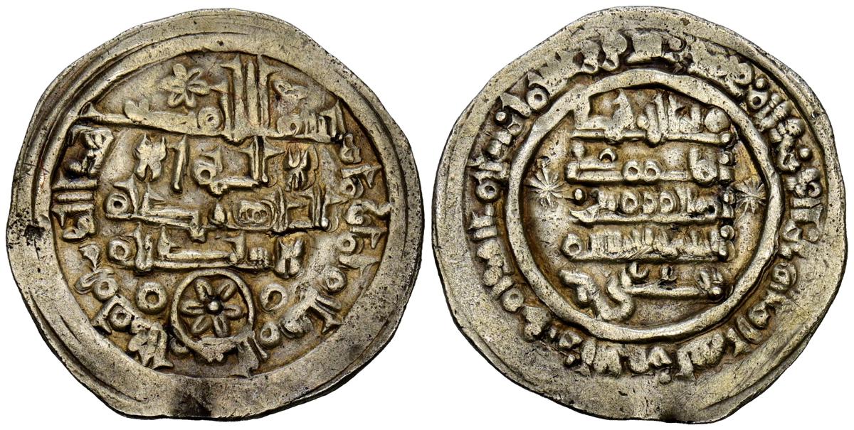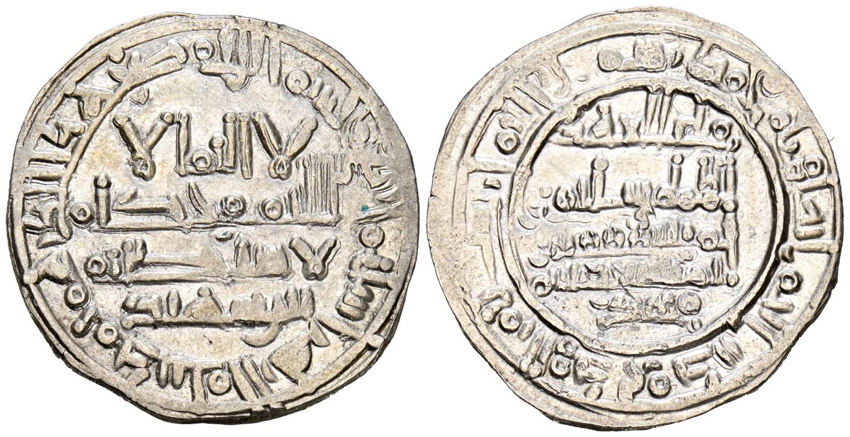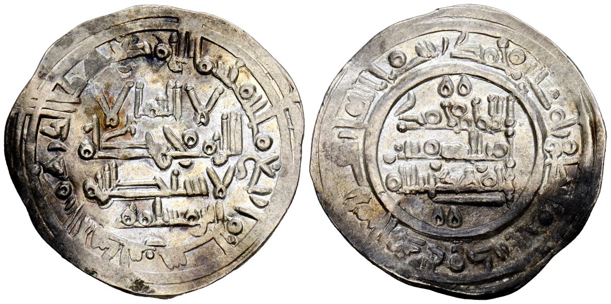 CALIFATO DE CORDOBA, Hisham II. Dirham. (Ar. 3,55g/24mm). 389H. Madinat Fas (Fez) / مدينة فاس. (Vives 622). Citando a 'Abd Allāh / عبداللة en IA. y 'Āmir / عامر en IIA. MBC+. Acuñación muy cuidada para esta ceca. Extraordinario y muy raro ejemplar.