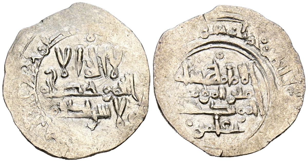 CALIFATO DE CÓRDOBA, Muhammad II. Dirham. (Ar. 2,87g/25mm). 400H. al-Ándalus / الاندلس. (Vives 688; Frochoso 400.155). Citando a Ibn Maslamah / ابن مسلمة en la IA. EBC-. Alabeada. Precioso ejemplar con un atractivo brillo.
