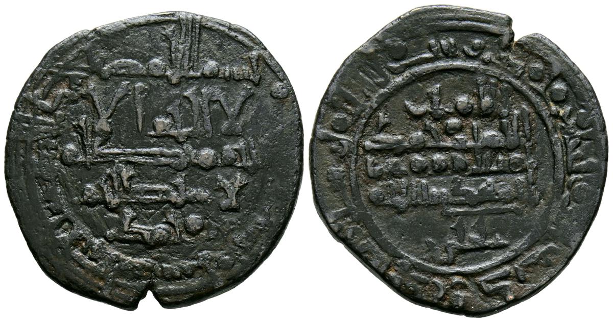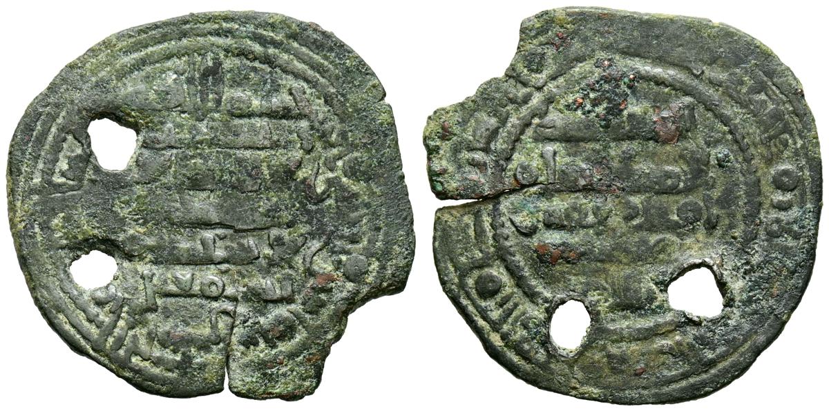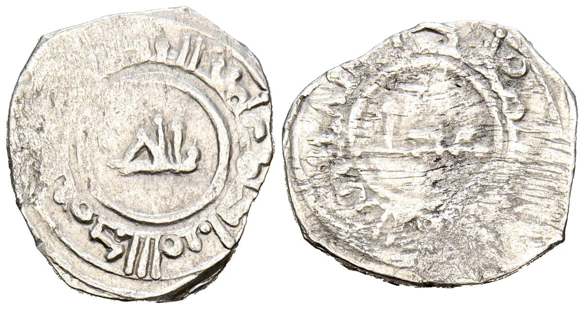 CALIFATO DE CÓRDOBA, Acuñación Norte-Africana. Hisham II. 1/2 dirham. (Ar. 1,24g/16mm). S/D. (Gaspariño 2016, Tipo 0; Manquso Nº2, pág 22). Anv: عدل (la justicia). Rev: بللة (de Dios). MBC. Rarísima, no hemos logrado localizar ningun otro ejemplar a parte de las mencionadas en el estudio.