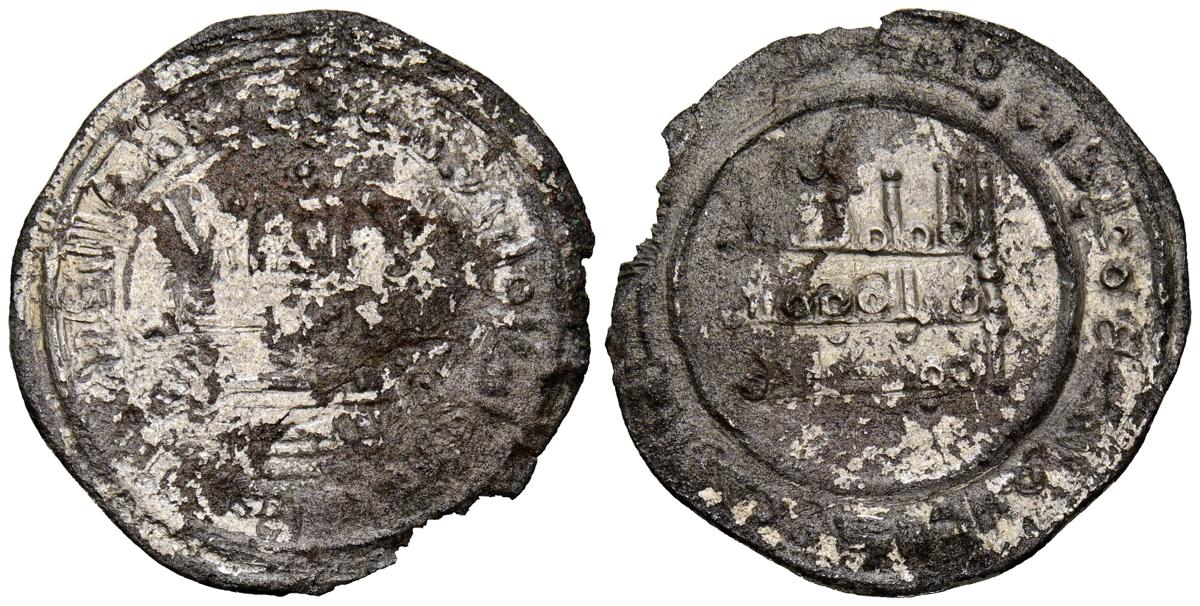 CALIFATO DE CÓRDOBA, Hisham II. Dirham falso de época. (Ar y Ae. 2,25g/23mm). 401H. al-Ándalus / الاندلس. (Vives 699 sim; Frochoso 401.35-36 sim). Citando a ¿Al-Bakrī / البكرى? en IA. MBC-. Interesante y raro ejemplar con la fecha perfectamente legib le.