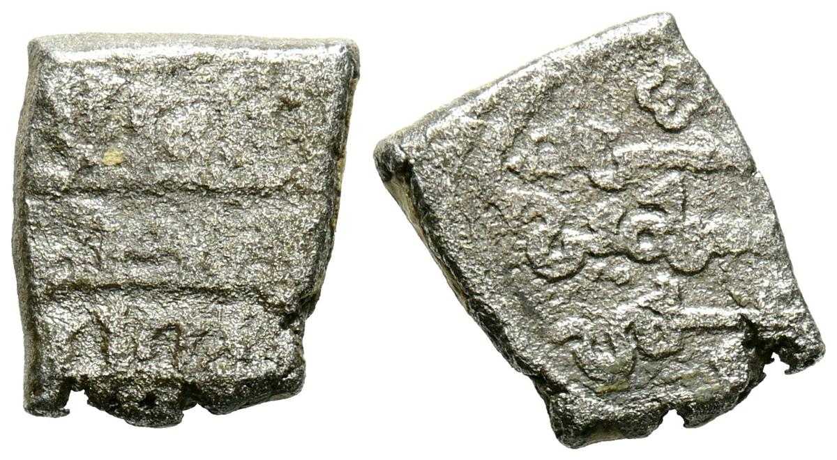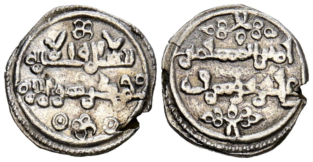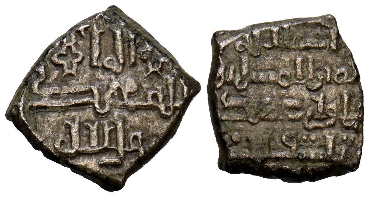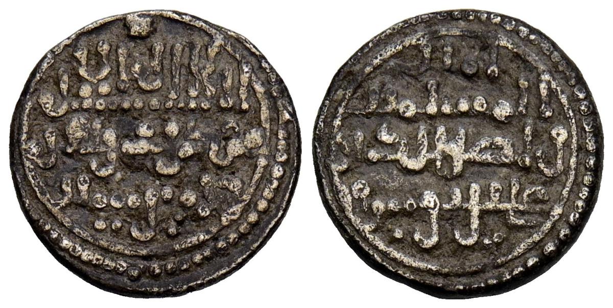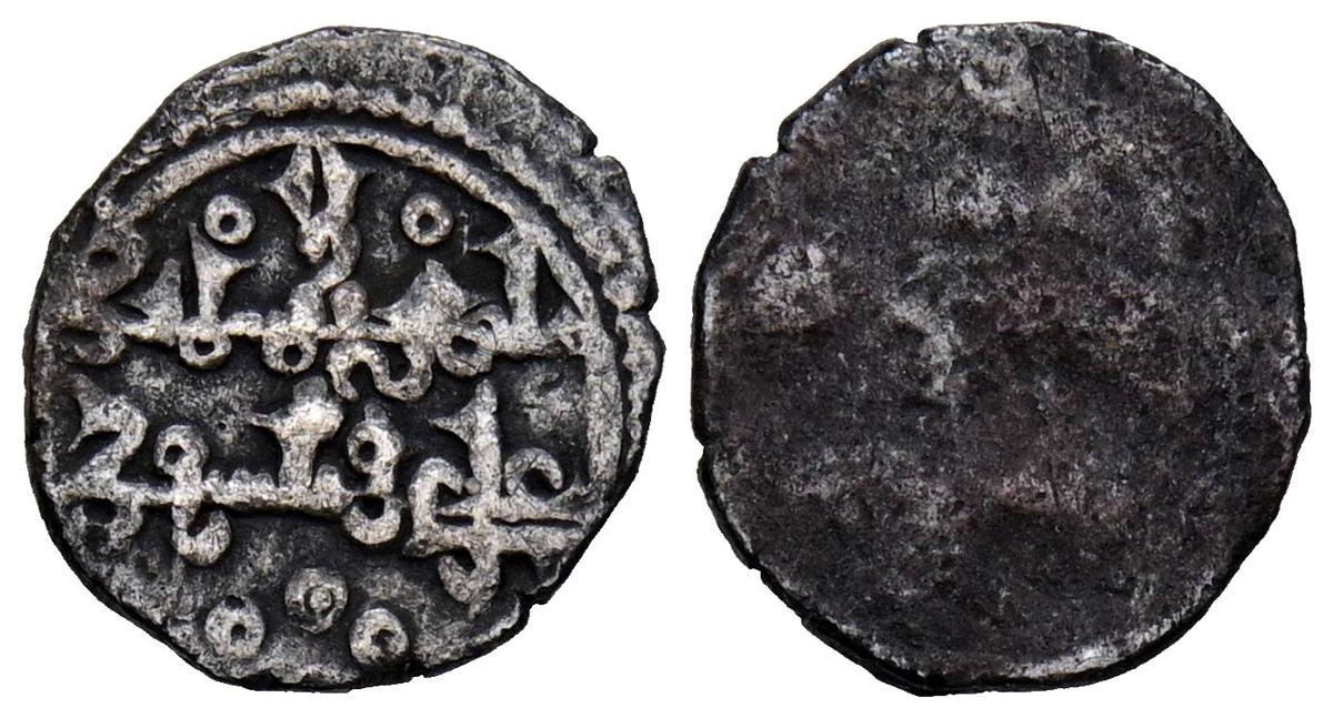 ALMORAVIDES. Ali ben Yusuf y el Emir Sir (522-533H.). Quirate. (Ar. 0,64g/13mm). S/D. (Vives no cita; Eustache 341A (lectura parcial); Benito Cf12). Anv: Shahada' en tres líneas y mención al heredero: الامير سير. Rev: En el centro: الله/ حسبي (Dios m e basta), alrededor se presenta a Ali con los títulos de Amir al-Muslimin y Nasir al-Din. MBC/MBC+. Vano. Muy raro.