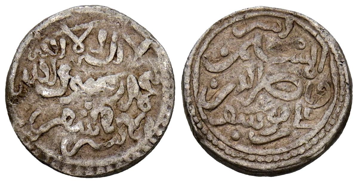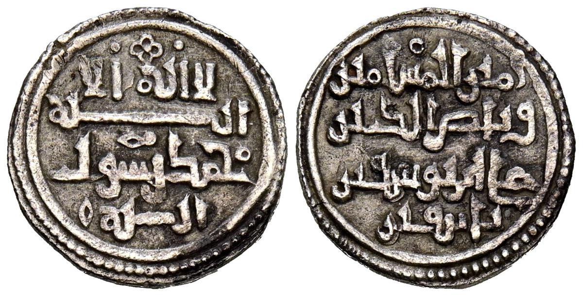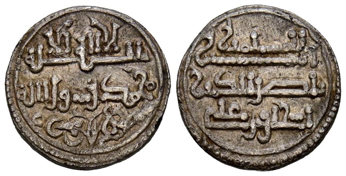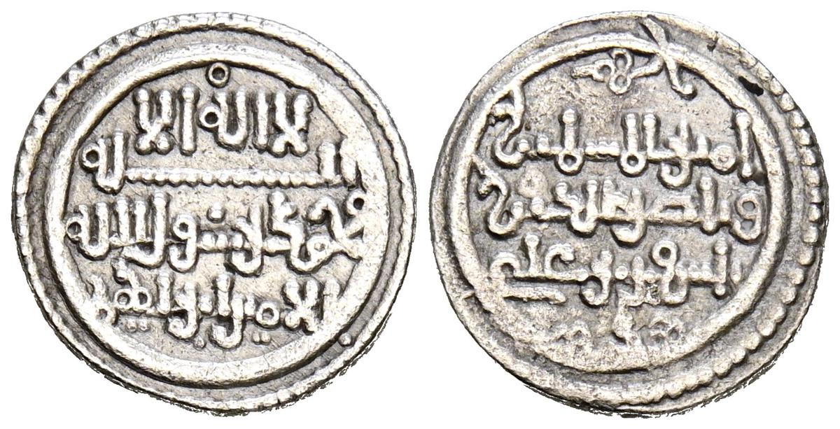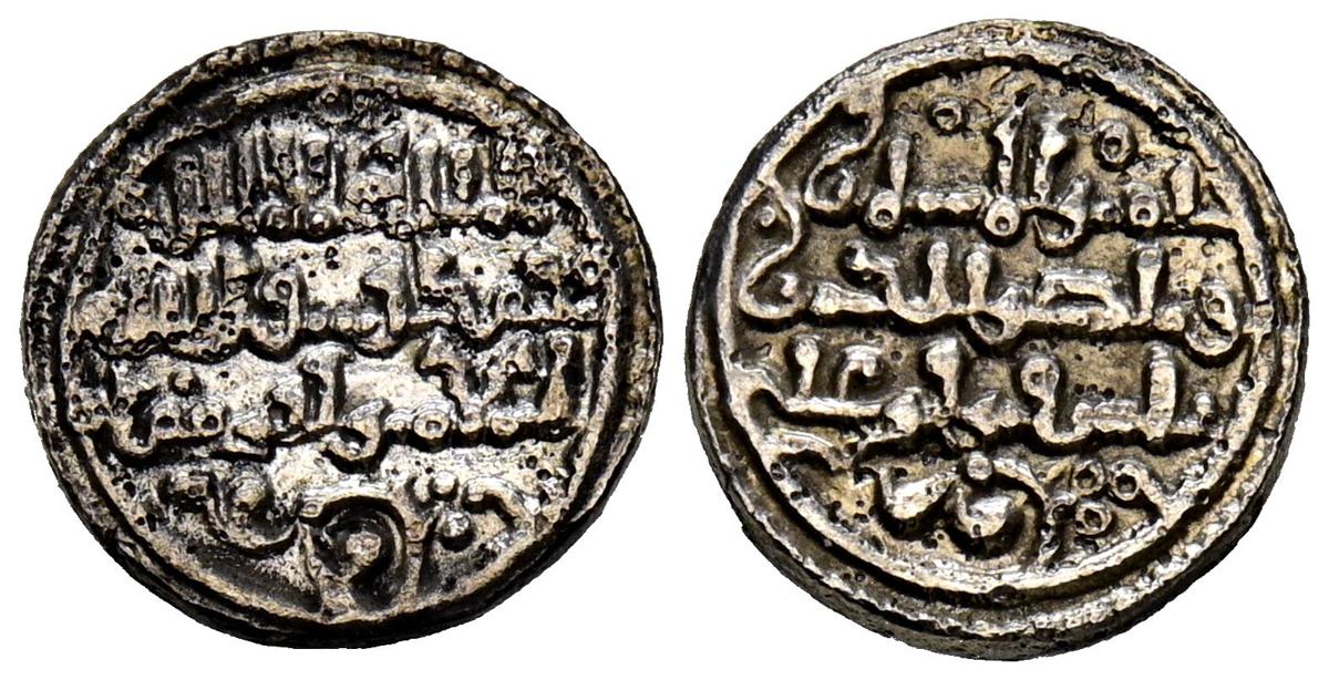 ALMORAVIDES, Ali ben Yusuf (500-537H). Quirate. (Ar. 0,92g/11mm). S/D. Anv: لمنت/ بالله (bi-Allah/'Amantu). Anv: لا اله الا الله محمد رسول الله (No dios sino Allah, Muhammad enviado de Allah). Rev: يوسف / بن (hijo de/Yusuf). Orla: امير المسلمين وناصر الدين علي (Amir al-Muslimin y Nasir al-Din Ali). EBC-. Muy rara. Pendiente de incorporación al catálogo de Benito de los Mozos.