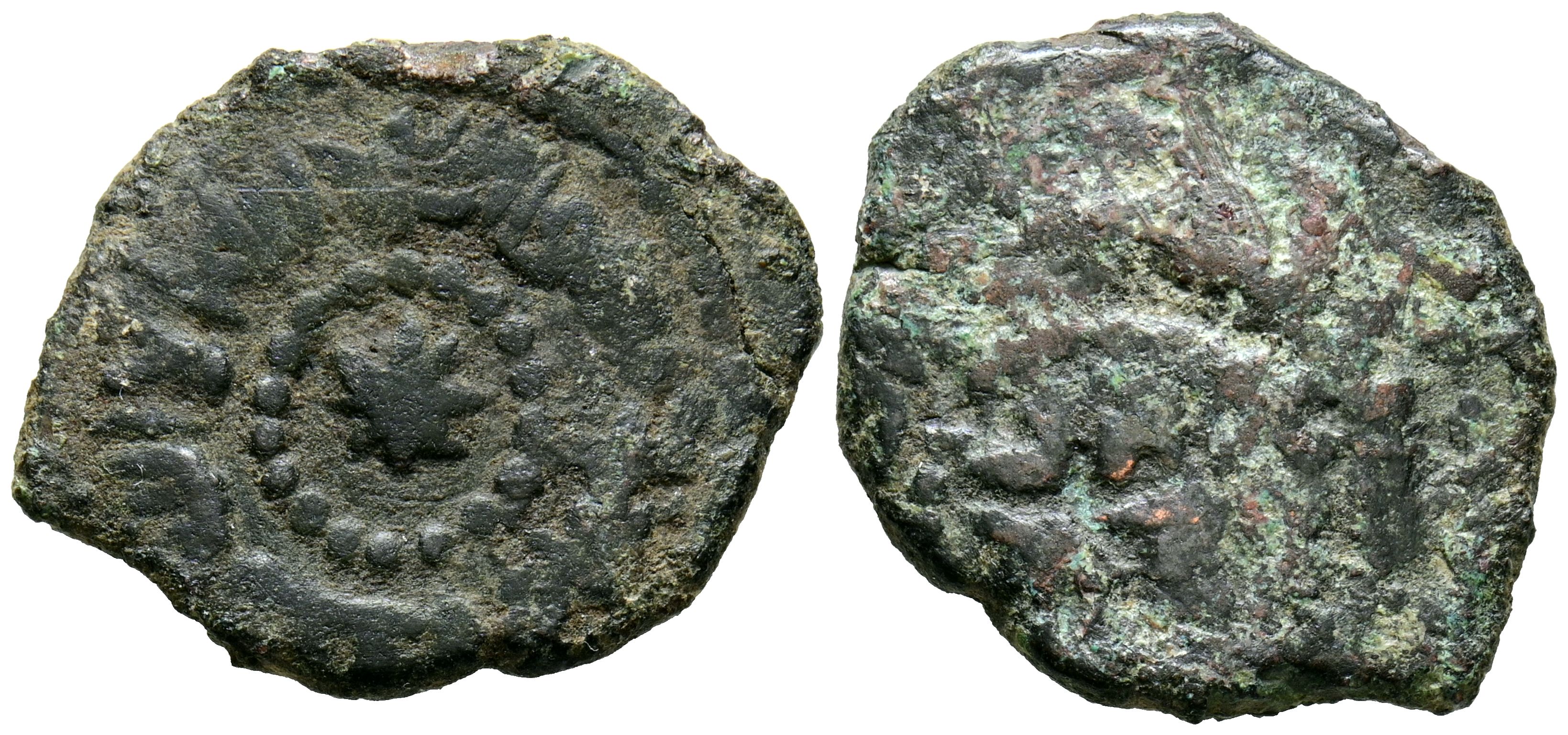 EMIRATO DEPENDIENTE DE CÓRDOBA, PERIODO DE GOBERNADORES. Anónimo. Felús. (Ar. 5,00g/25mm). S/D. al-Ándalus / الاندلس. (Vives 44; Frochoso XVII-c). Anv: Estrella de 8 puntas dentro de gráfila circular, alrededor Profesión de Fé,'Sahada'. Rev: ندلس/ ا لا, dentro de gráfila circular, alrededor 'Basmala'. MBC/RC. Cospel irregular.