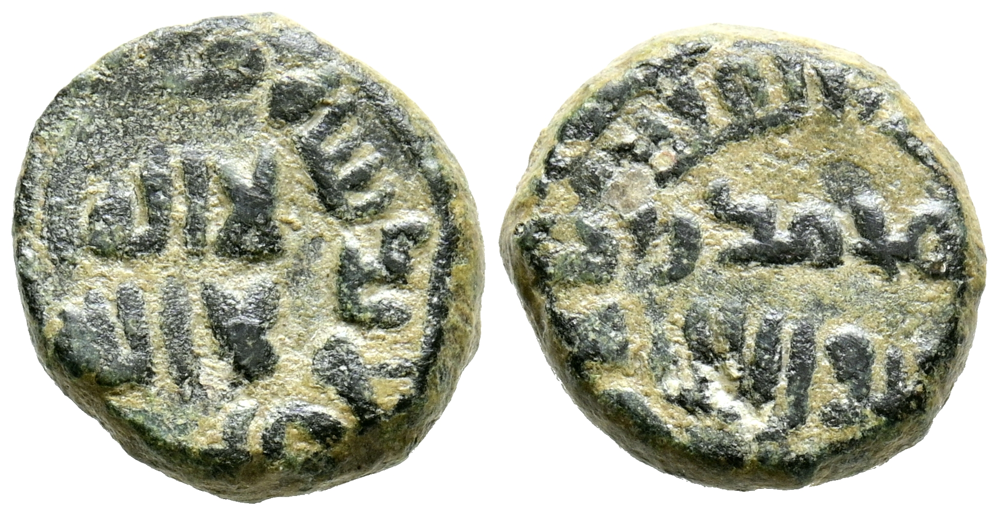 EMIRATO DEPENDIENTE DE CÓRDOBA, PERIODO DE GOBERNADORES. Anónimo. Felús. (Ar. 2,91g/14mm). al-Ándalus / الاندلس. (Vives 41; Frochoso XVIII-e). Dos líneas de leyenda religiosa en el centro de ambas áreas. Orlas; Anv:.. ا لفلس بالا... Rev: ...الاندلس. MBC+. Escasa.