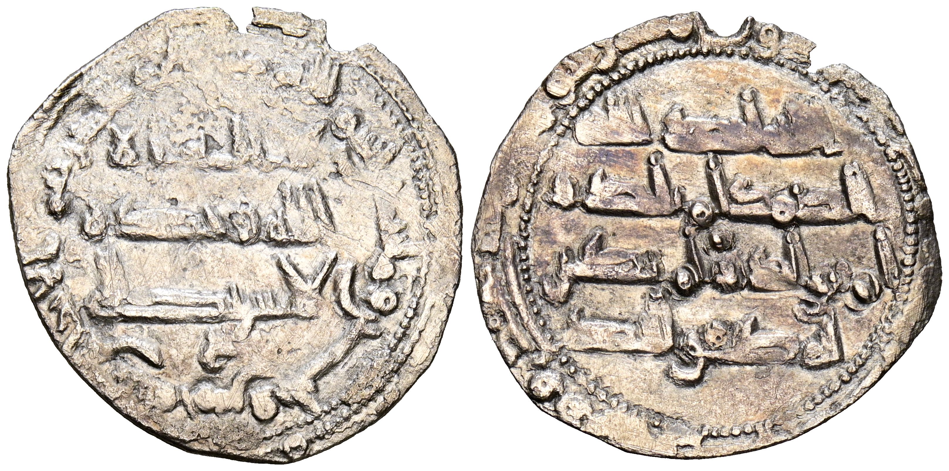 EMIRATO INDEPENDIENTE DE CÓRDOBA. Abd al-Rahman II. Dirham. (Ar. 1,59g/23mm). 235H. al-Ándalus / الاندلس. (Vives 208, 2º acuñación; Frochoso 235.1). Variante con la letra ح en AI. MBC-.
