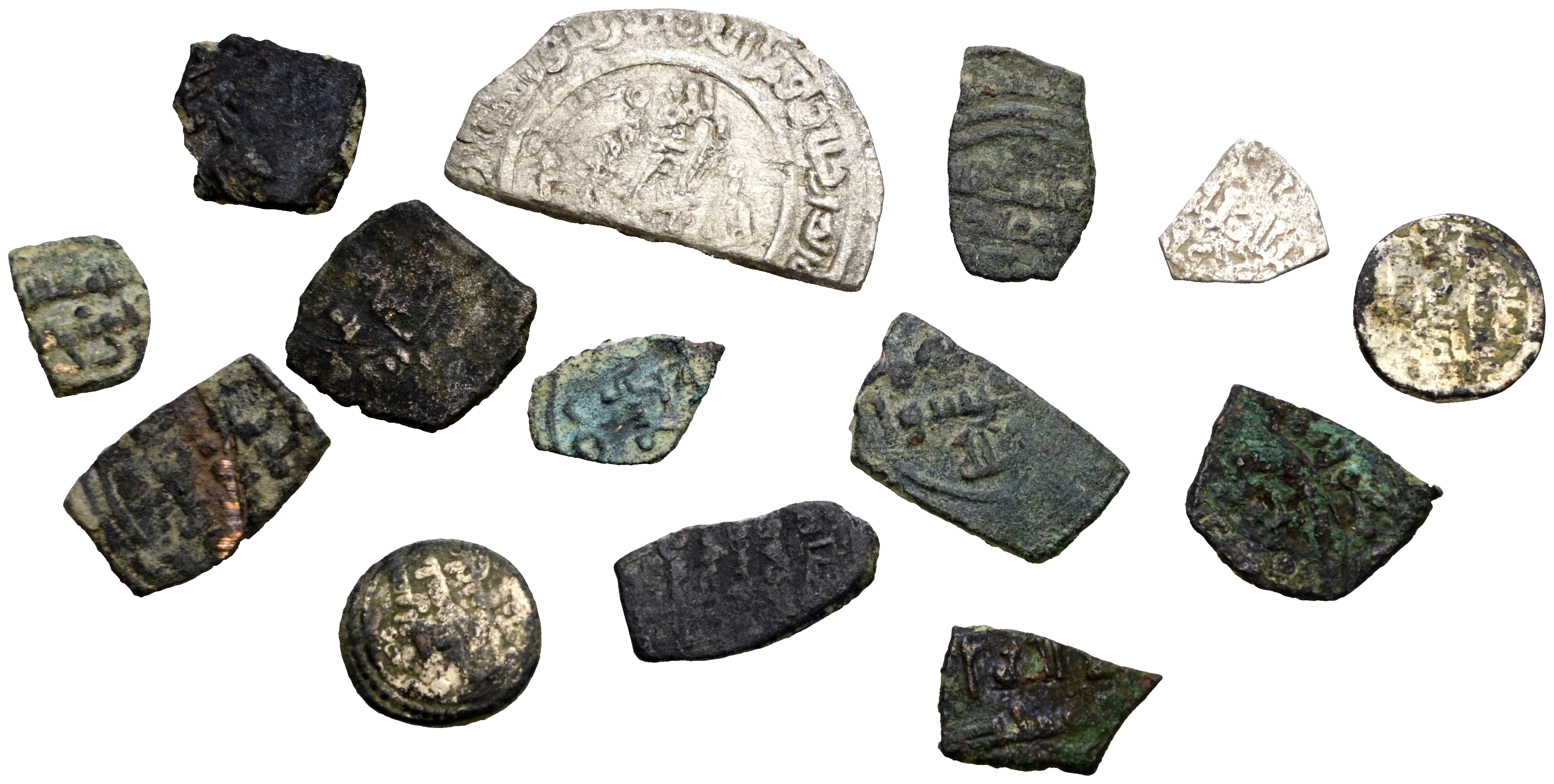 CALIFATO, TAIFAS Y ALMORAVIDES. Interesante conjunto formado por 14 fracciones que abarcan una amplia cronología, destacando una mayoría de piezas del periodo de Taifas. Diferentes módulos y estados de conservación. A EXAMINAR.