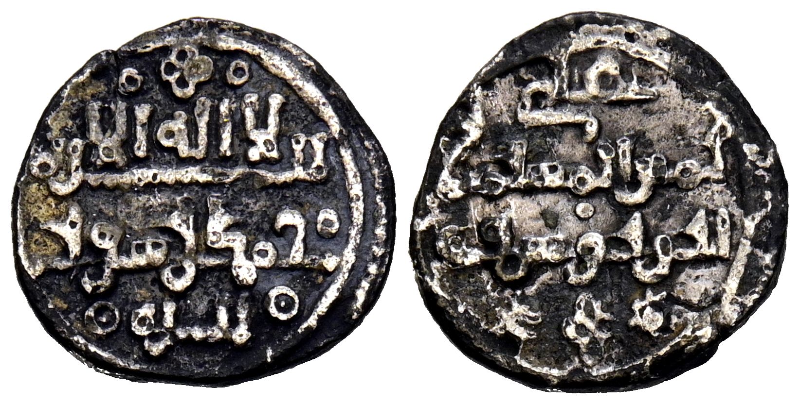 ALMORÁVIDES, Alí ibn Yusuf (500-537H). Quirate. (Ar. 0,84g/11mm). S/D. Anv: 'Sahada' en cuatro líneas. Rev: علي (Alí) / امير المسلين (Amir al-Muslimin) / ابن توسف (hijo de Yusuf). MBC. Oxidaciones. Pendiente de incorporación al catálogo de Benito de los Mozos.