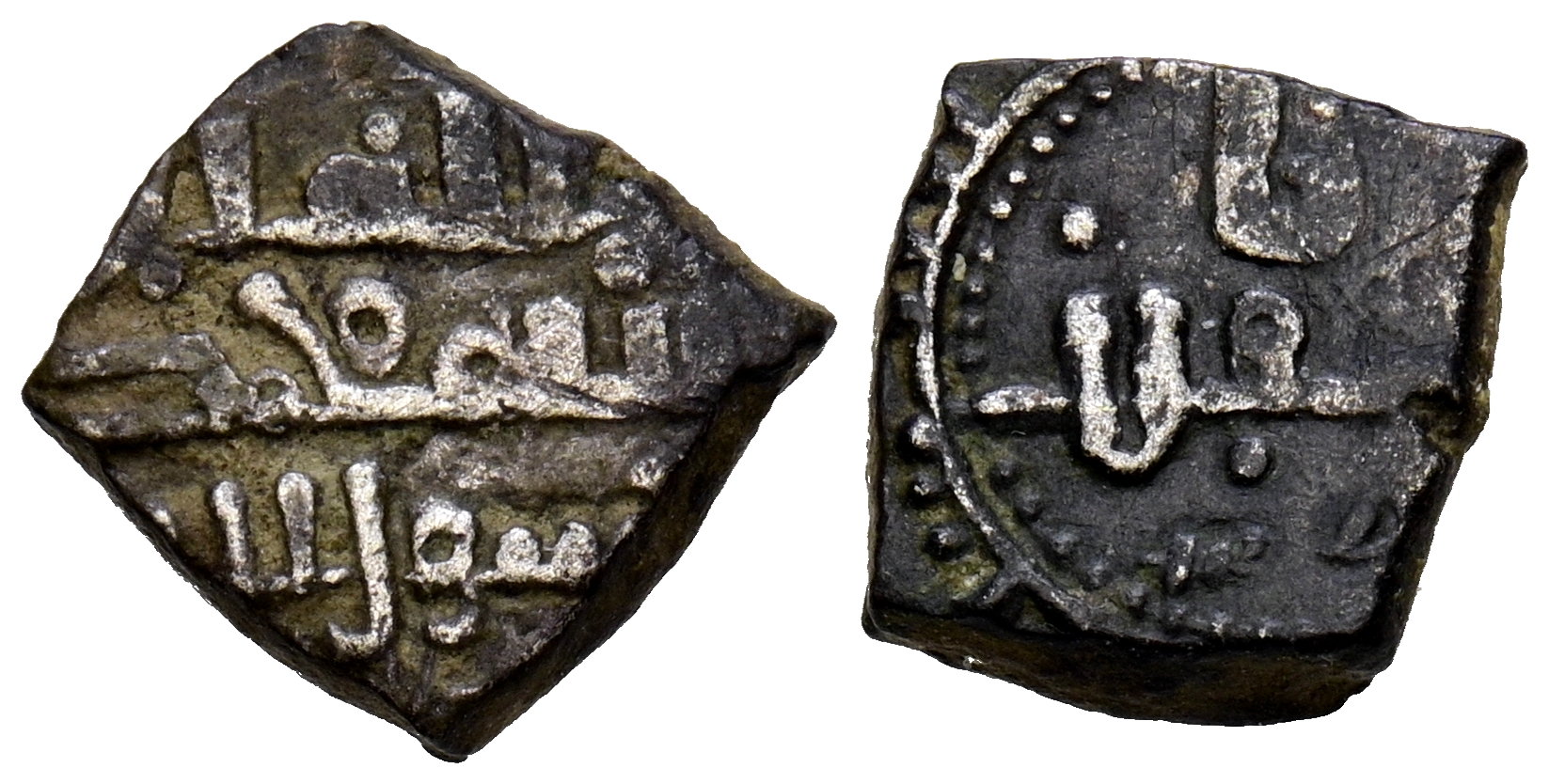 ALMORAVIDES. Tashfin Ibn Alí (537-539H). Fracción de dirham / handus. (Ar. 1,38g/12mm). Atribuído a Jaén. (Prieto 174; Francés 325; Manquso nº10, pág. 30). Anv: 'sahada' en tres líneas. Rev: شفين/ تا (Tashfin). MBC+. Rara.