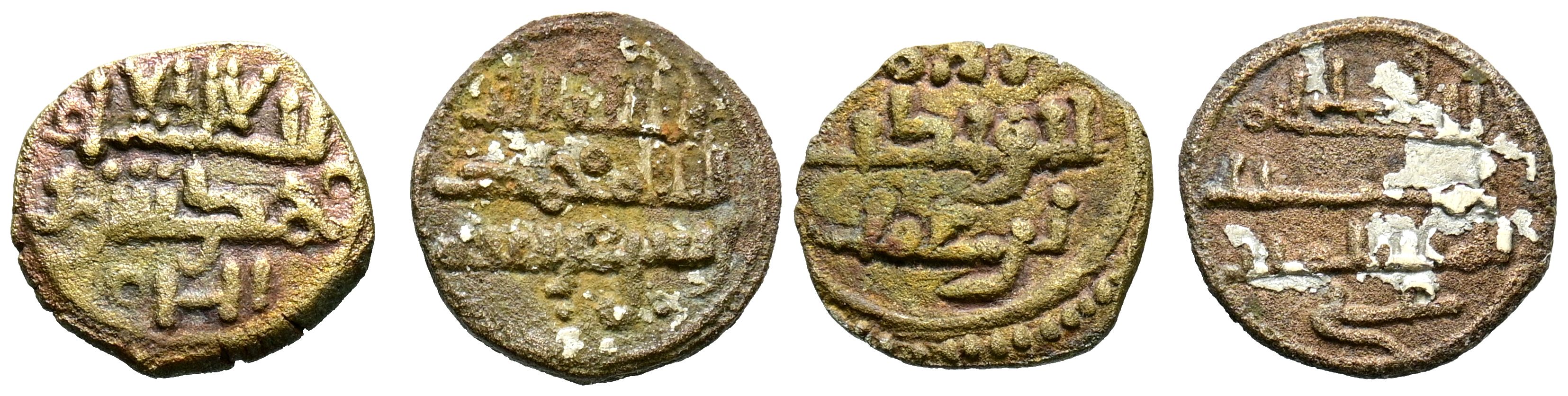 ALMORÁVIDES. Interesante pareja de quirates forrados, a nombre de Abu Bakr y Ali. Diferentres medidas y estados de conservación. A EXAMINAR.