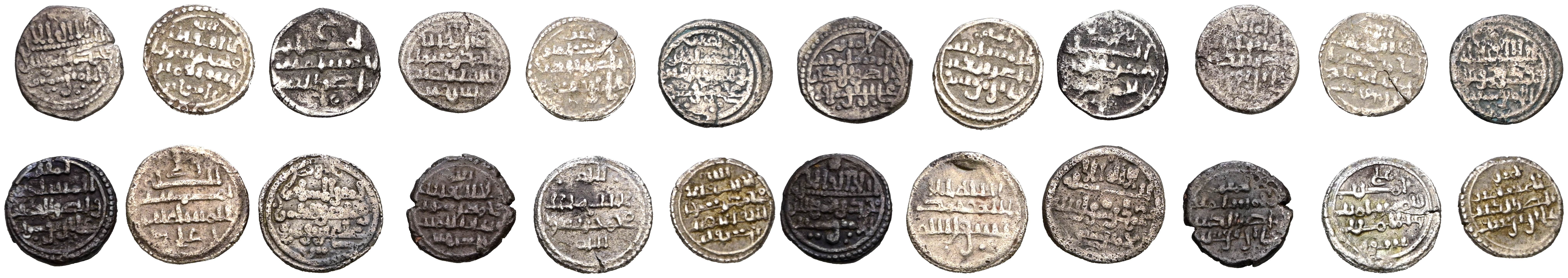 ALMORÁVIDES. Interesante conjunto formado por 12 Quirates de Ali Ibn Yusuf, citando en algunos de ellos al Emir Sir. Diversas medidas, variantes y estados de conservación. A EXAMINAR.