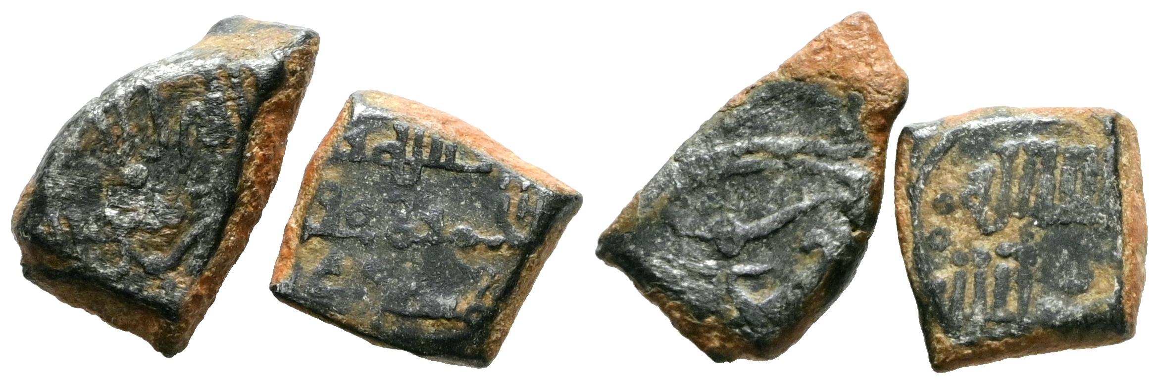 TAIFAS ALMORAVIDES. Interesante pareja de fracciones de dirhams de Muhammad ibn Sa'd (Ibn Mardanish) emir de Murcia y Valencia. Diferentes tipos, medidas y estados de conservación. A EXAMINAR.
