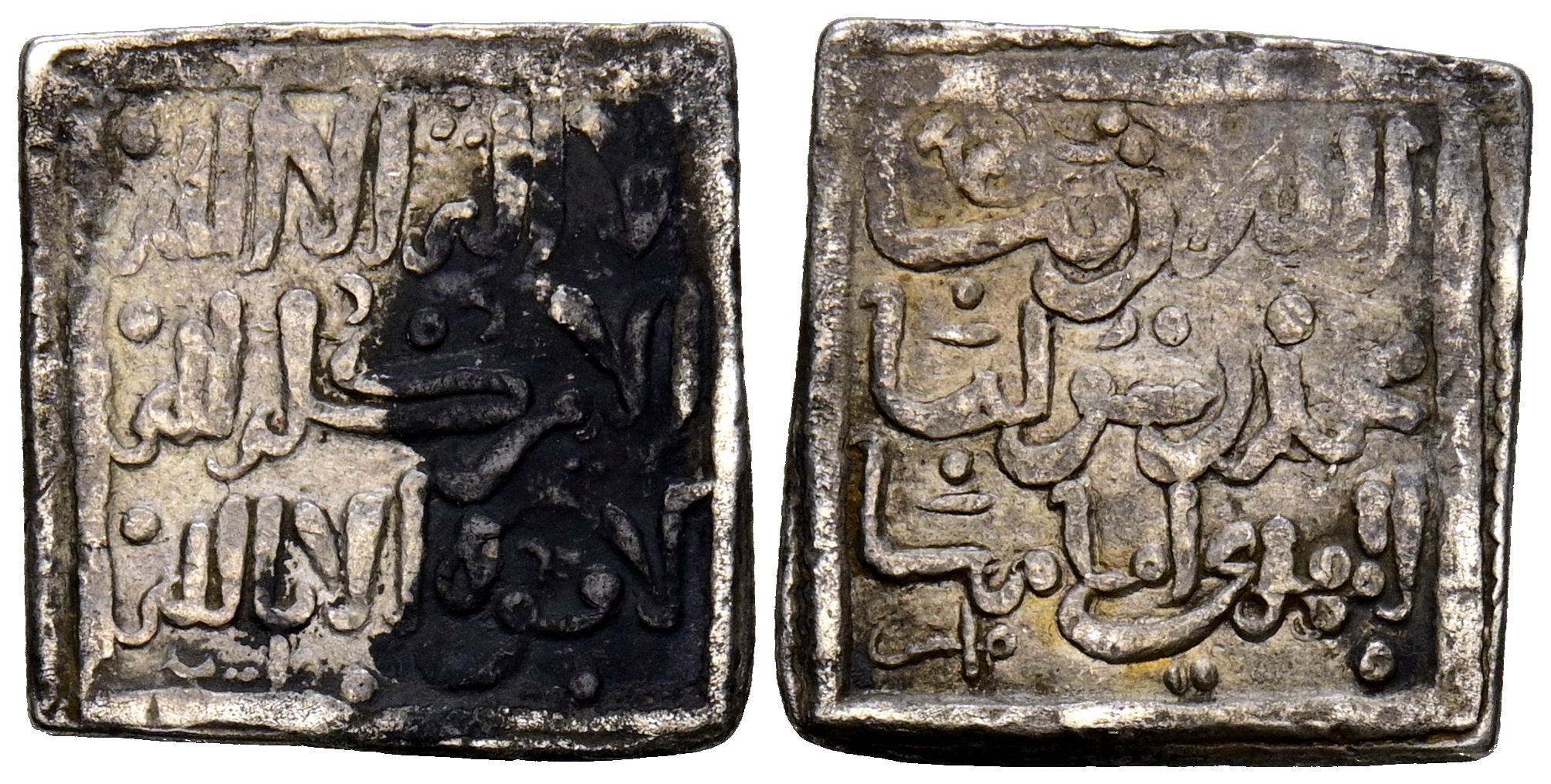 ALMOHADES. Anónimo a nombre del imán Al-Mahdi. Dirham. (Ar. 1,49g/14mm). Fez / فاس. (Vives 2108; Hazard 1095; Hohertz 601d). Variante con ceca en ambas áreas. MBC. Oxidaciones.