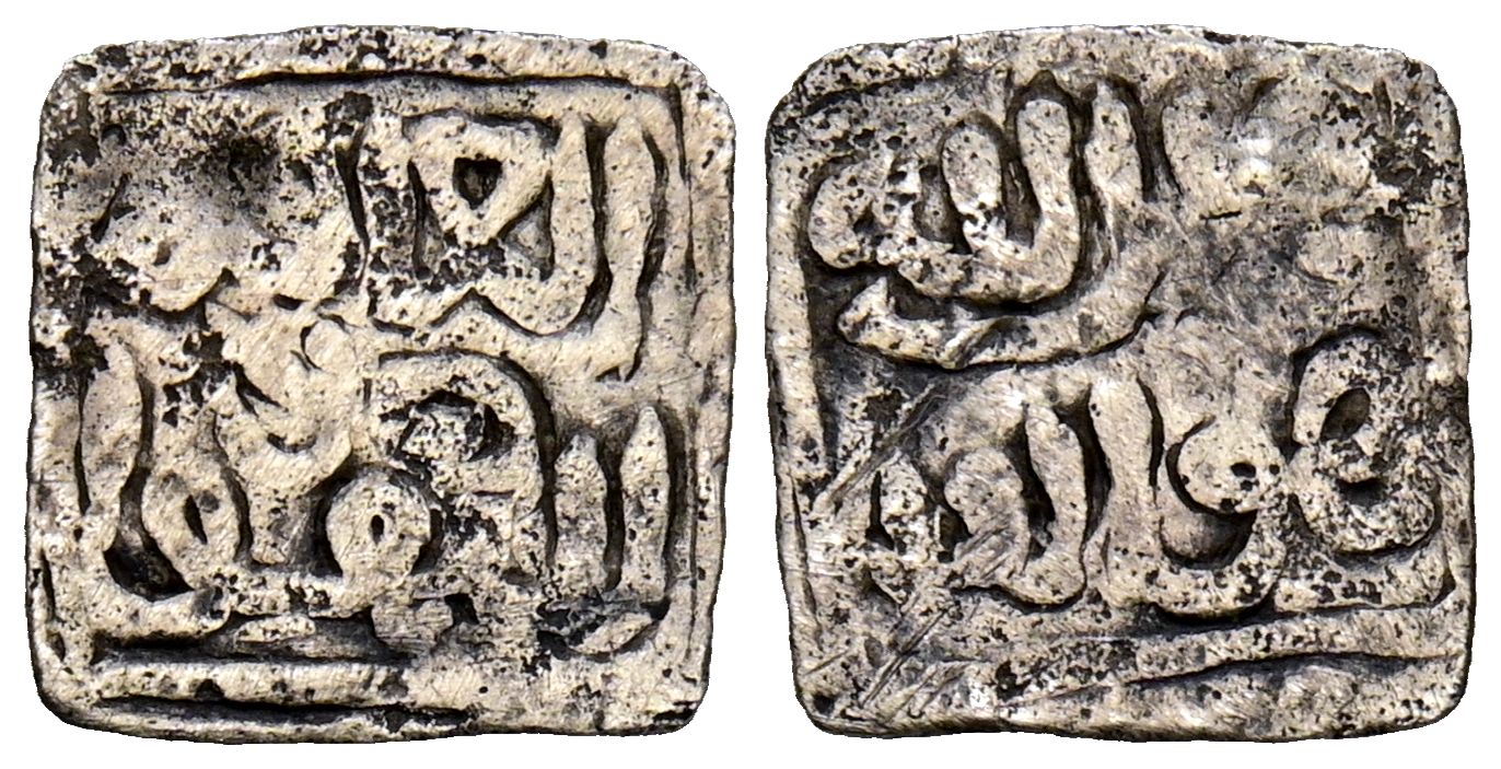 ALMOHADES, Anónimo. 1/4 Dirham. (Ar. 0,22g/9mm). (Vives 2209, como Nazarí; Medina 203a; Hohertz 636). Anv: هدى الله / هو الهدى. (La guía de Allah / es la guía). Rev: العا قبة / التقوا. (La recompensa del más allá / pertenece a los devotos). Acuñación tosca, posiblemnte falsario africano de época. MBC-. Porosidad.