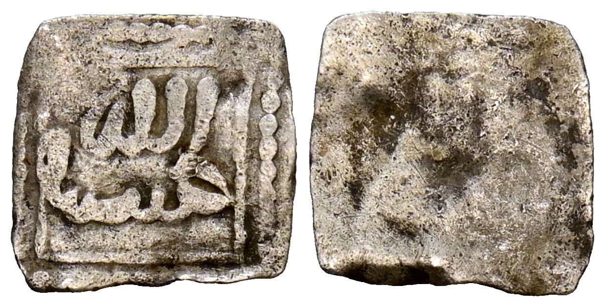 ALMOHADES, Anónimo. 1/8 Dirham. (Ar. 0,14g/8mm). S/D. (Hohertz 645; Medina 203c, variante sin ceca). Anv: حسبنا / الله (Dios me basta). Rev: Anepígrafo. MBC. Rara.