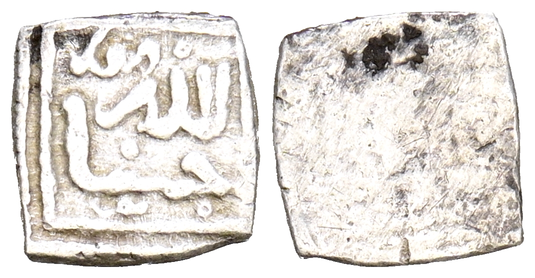 ALMOHADES, Anónimo. 1/8 Dirham. (Ar. 0,18g/7mm). S/D. (Hohertz 645; Medina 203c, variante sin ceca). Anv: حسبنا / الله (Dios me basta). Rev: Anepígrafo. MBC. Rara.
