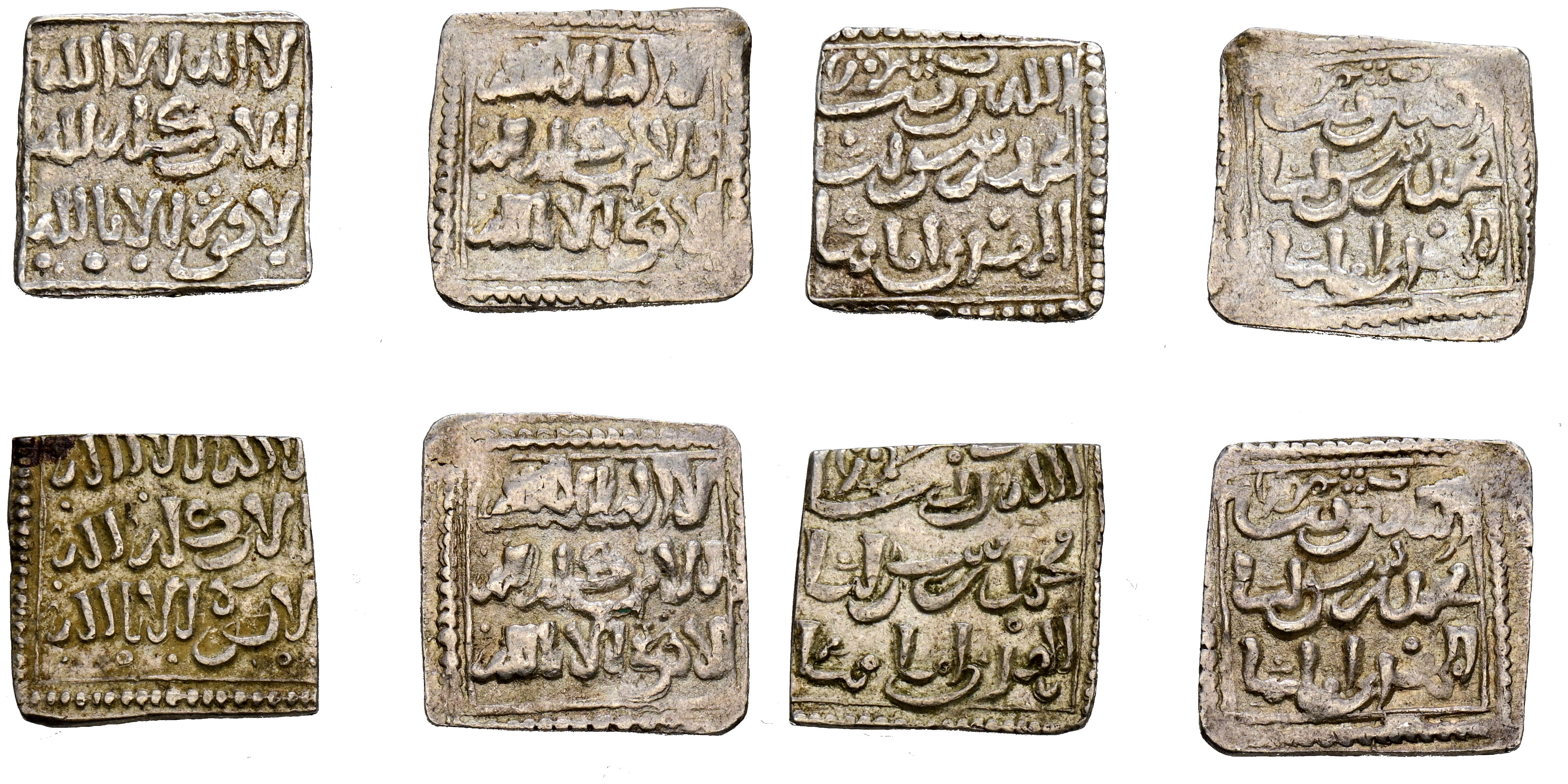 ALMOHADES. Interesante conjunto formado por 4 dirham anónimos, citando a Al-Mahdi. Dierentes medidas y estados de conservación. A EXAMINAR.