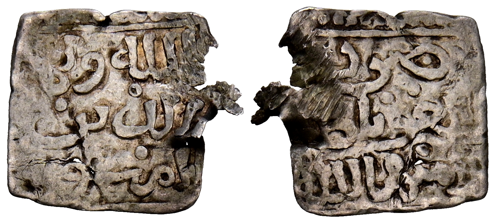 NAZARIES DE GRANADA. 1/6 Dirham. (Ar. 0,23g/10mm). Bi-Gharnata / بــغرناطة. (Vives 2208 y Medina 270-c, como 1/4 de dirham; Hohertz 774, como RR). MBC. Marcas de golpe. Muy rara.