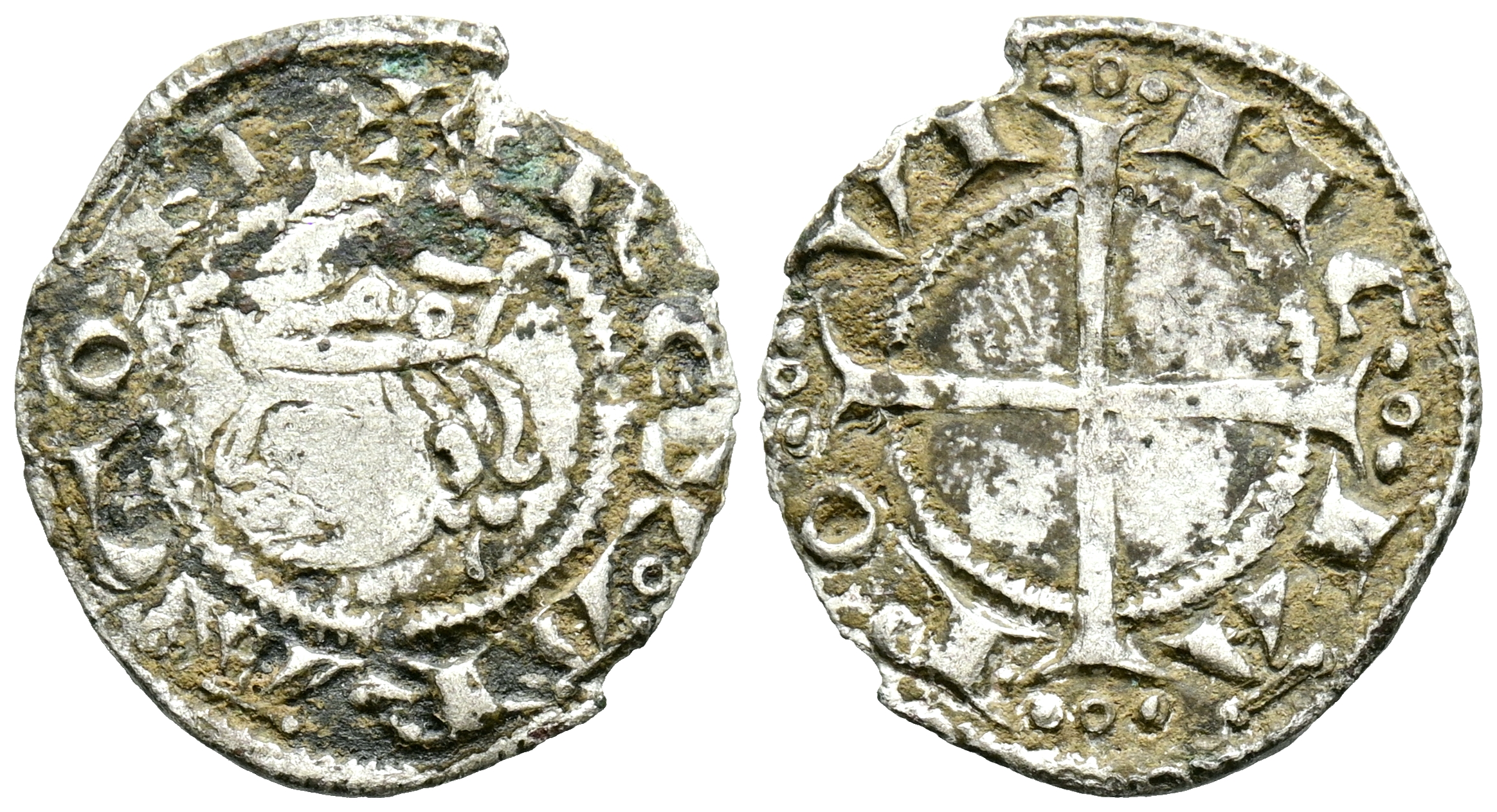 JAIME I (1213-1276). Dinero. (Ve. 0,76g/17mm). Marsella, Condado de la Provenza. (Cru.V.S. 174; Cru C.G 2124). Busto coronado de Jaime I a izquierda dentro de una gráfila circular, alrededor leyenda: REX ARA GONE. Rev: Cruz pasante con tres puntos en los extremos, alrededor leyenda: PO VI NC IA. MBC/MBC-. Rara.