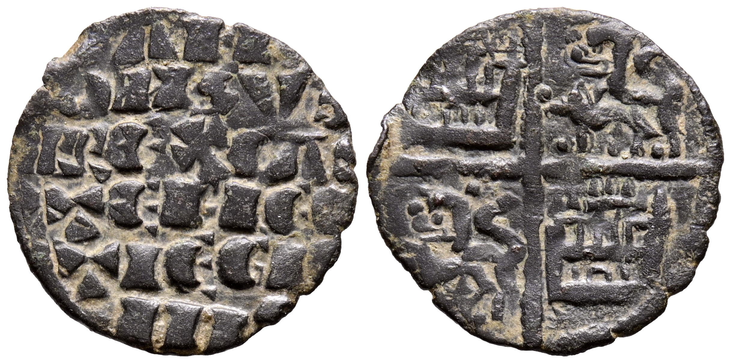 ALFONSO X (1252-1284). Dinero Alfonsí ''de la 1º guerra de Granada". (Ve. 0,87g/17mm). Marca de ceca: Estrella. (Imperatrix A10:4.43; FAB-234). Anv: Leyenda en seis líneas: ALF/ONSVS/REX CAS/TELLE E/T LEGIO/NIS. Rev: Castillos y leones con marca de ceca, estrella en 1º cuadrante. MBC+.