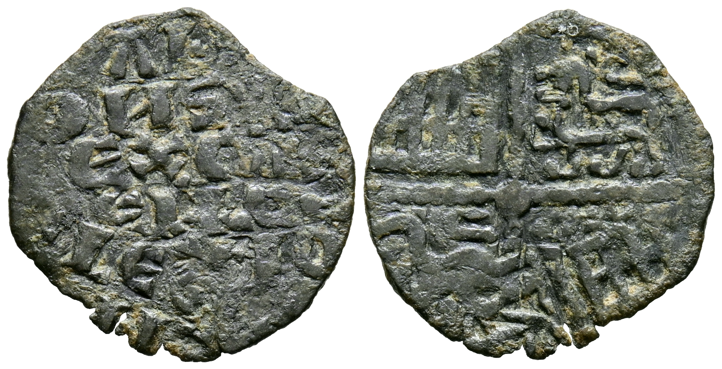 ALFONSO X (1252-1284). Dinero alfonsí ''de la 1º guerra de Granada''. (Ve. 0,72g/17mm). Marca de ceca punto central. (Imperatrix A10:4.72; FAB-no cita). Anv: Leyenda en seis líneas: ALF/ONSVS/REX CAS/TELLE E/T LEGIO/NIS. Rev: Cuartelado de castillos y leones, con punto central. MBC-. Escasa.