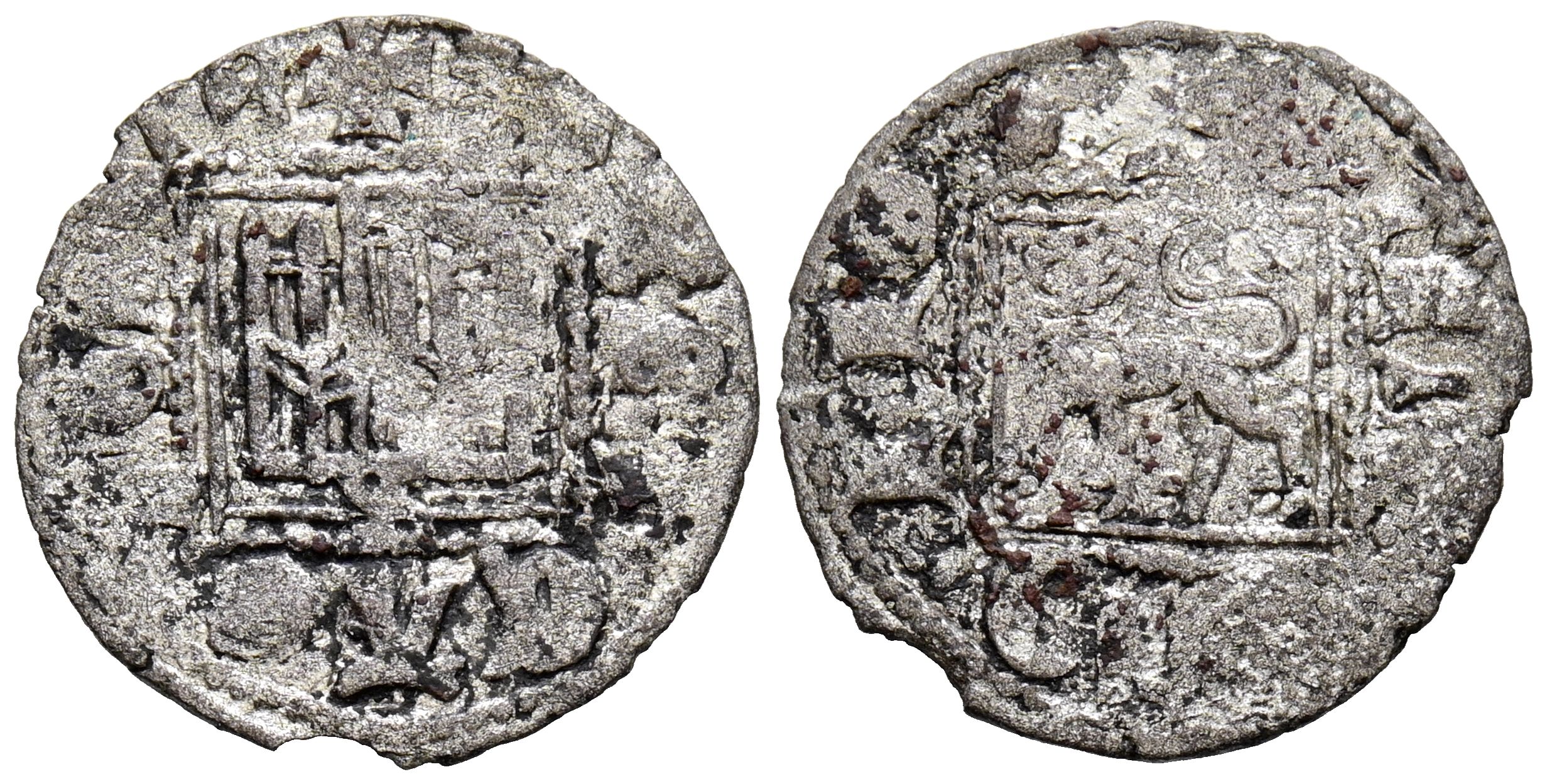 ALFONSO XI (1312-1350). Dinero Novén. (Ve. 0,65g/17mm). Sevilla. (Imperatrix A11:1.19; FAB-358). Anv: Castillo, debajo S tumbada, todo dentro de gráfila cuadrada, alrededor leyenda: ALF REX CASTELLE. Rev: León pasando a izquierda, alrededor leyenda: ET LEGIONIS. MBC-.