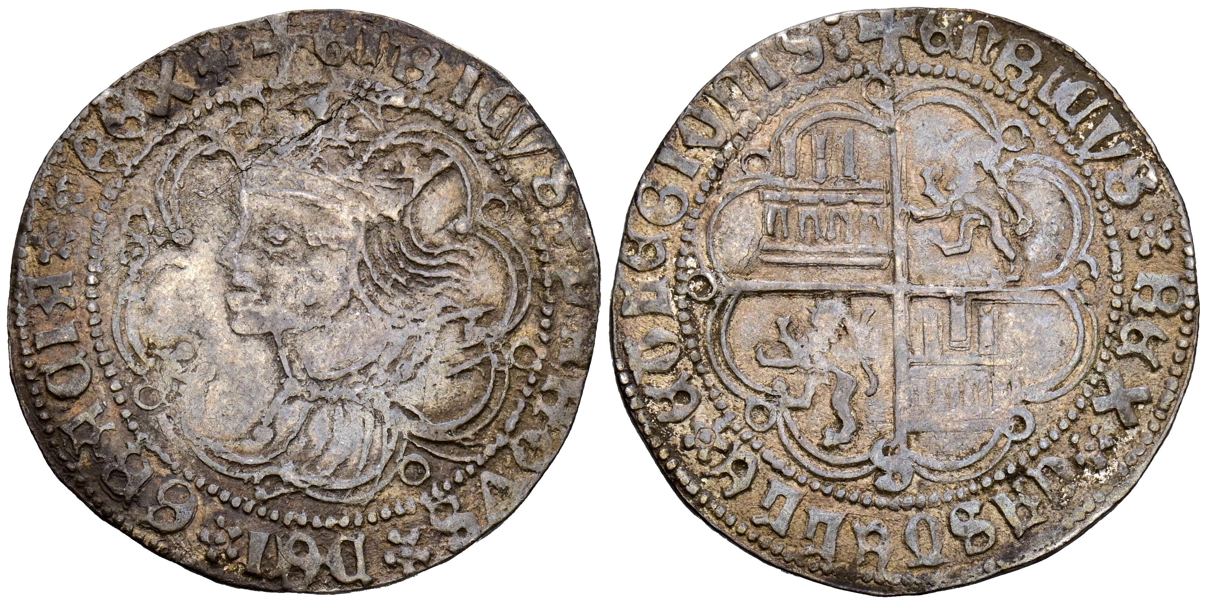ENRIQUE IV (1454-1474). 1 Real. (Ar. 3,39g/28mm). Sevilla. (Imperatrix E4:9.25; FAB-685). Anv: Busto coronado de Enrique IV a izquierda dentro de gráfila polilobular, alrededor leyenda: ENRICVS QVARTVS DEI GRACIA REX. Rev: Cuartelado de castillos y leones dentro de gráfila polilobular, abajo S, alrededor leyenda: ENRICVS REX CASTELLE ET LEGIONIS. MBC. Tono