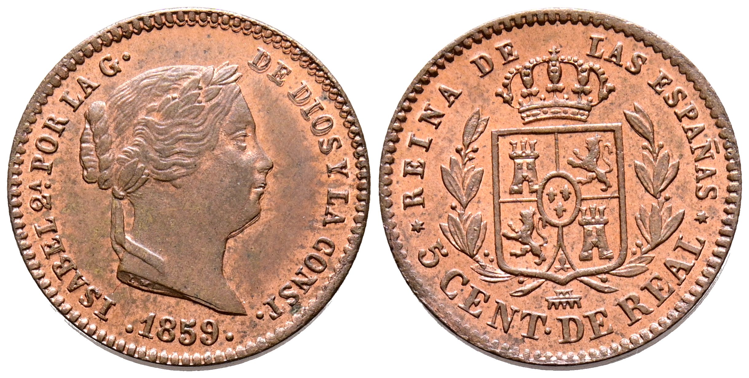 ISABEL II (1833-1868). 5 Céntimos de Real. (Ae. 1,68g/17mm). 1859. Segovia. (Cal-2019-161). SC-. Brillo original. Magnífica pieza.