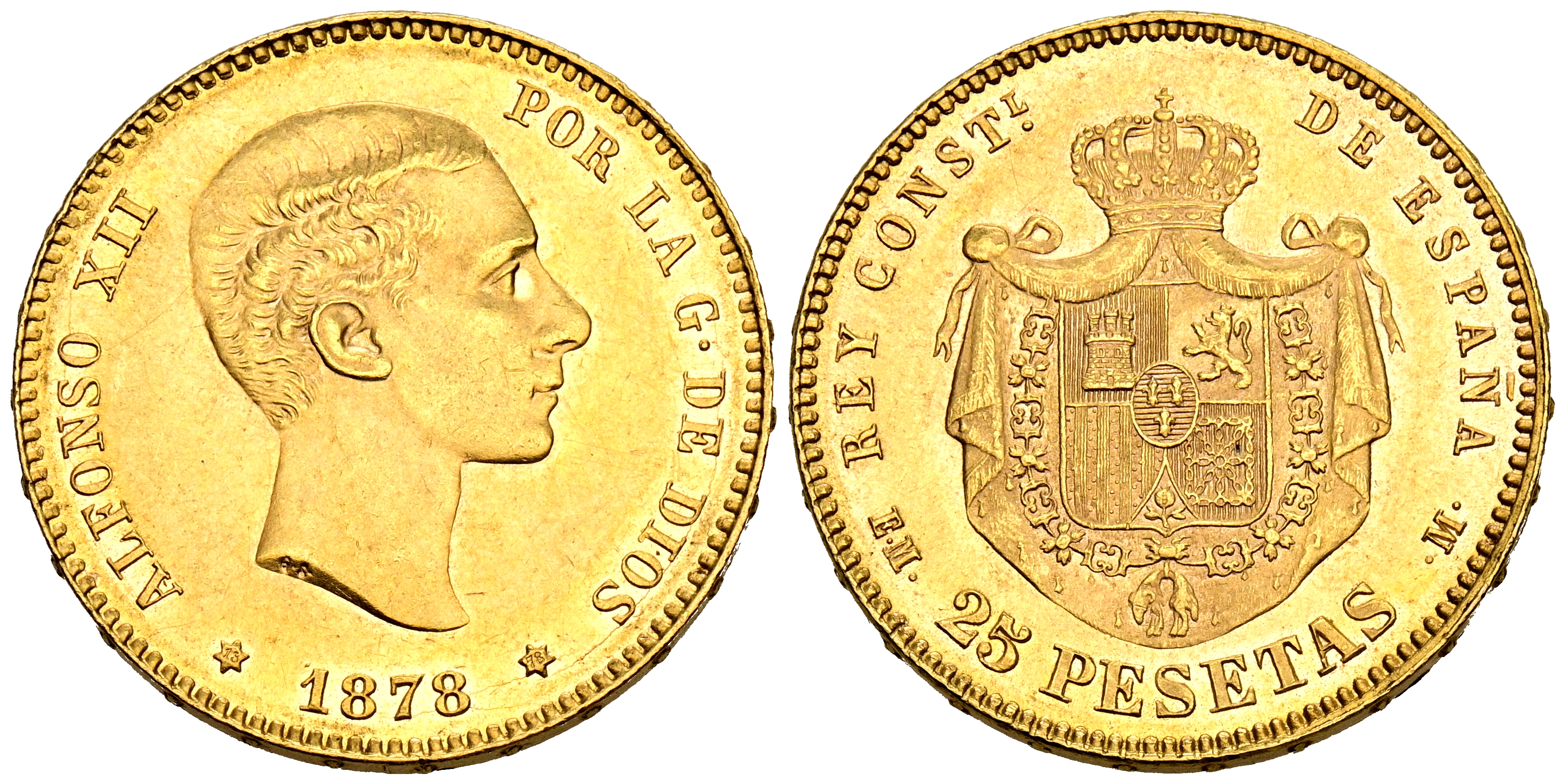 ALFONSO XII (1874-1885). 25 Pesetas. (Au. 8,05g/24mm). 1878 *18-78. Madrid EMM. (Cal-2019-71). EBC.
