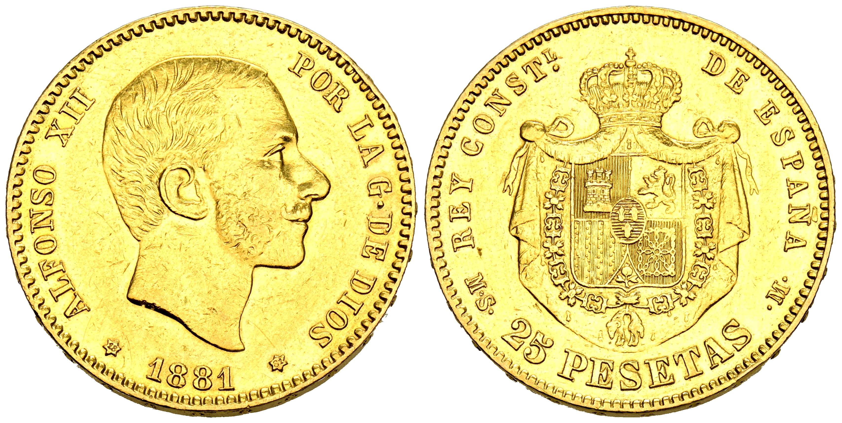 ALFONSO XII (1874-1885). 25 Pesetas. (Au. 8,03g/24mm). 1881 *18-81. Madrid MSM. (Cal-2019-82). MBC.
