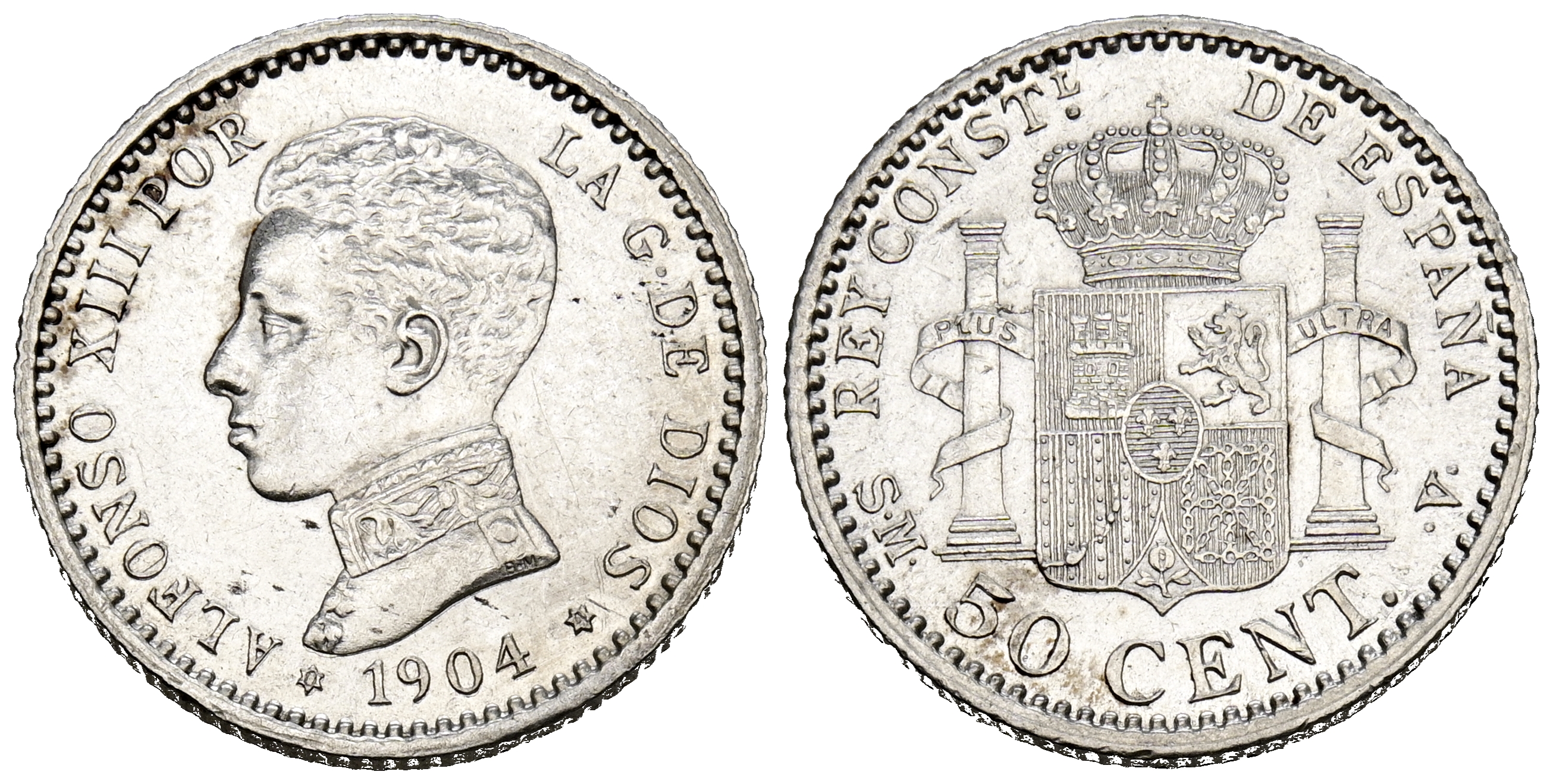 ALFONSO XIII (1885-1931). 50 Céntimos. (Ar. 2,53g/18mm). 1904 *0-4. Madrid PGM. (Cal-2019-46). SC-. Brillo original.