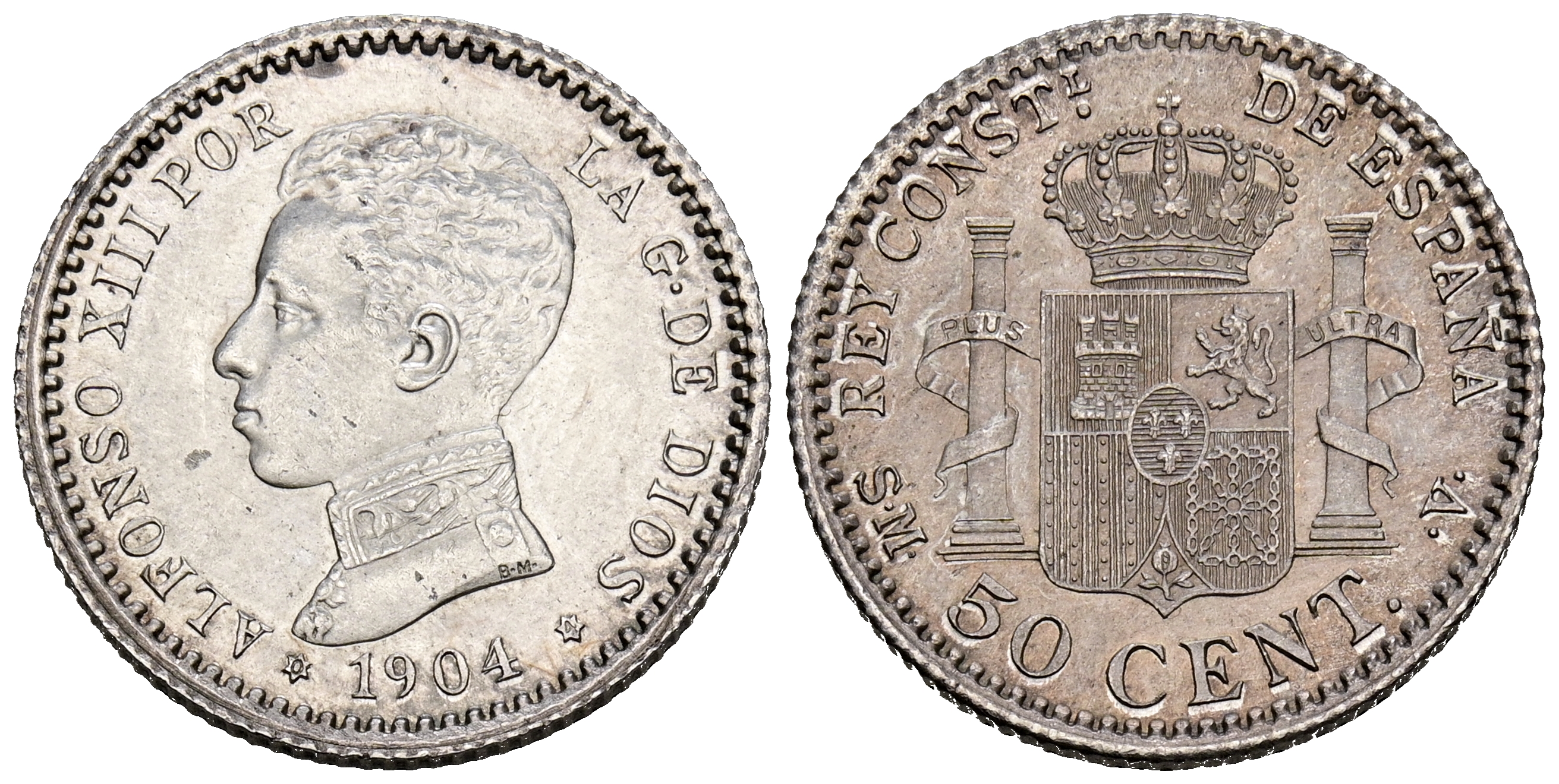 ALFONSO XIII (1885-1931). 50 Céntimos. (Ar. 2,52g/18mm). 1904 *0-4. Madrid PGM. (Cal-2019-46). SC-. Brillo original.