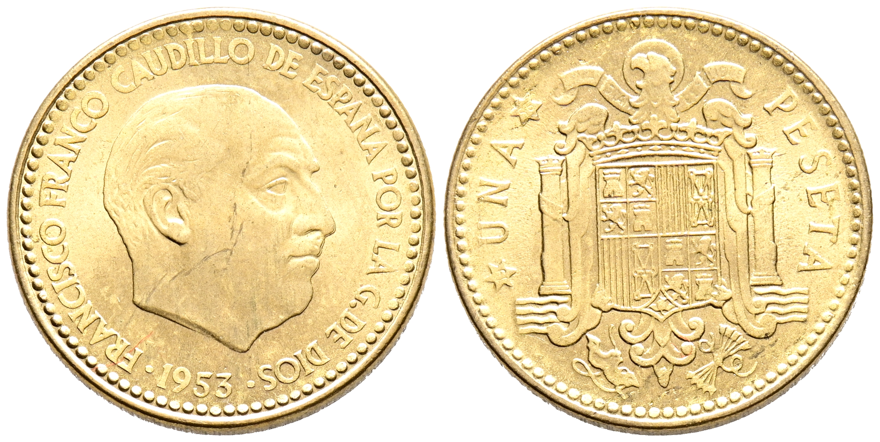 ESTADO ESPAÑOL (1936-1975). 1 Peseta. (Al-Ae. 3,40g/21mm). 1953 *19-56. Madrid. (Cal-2019-58). SC-. Estrellas flojas.