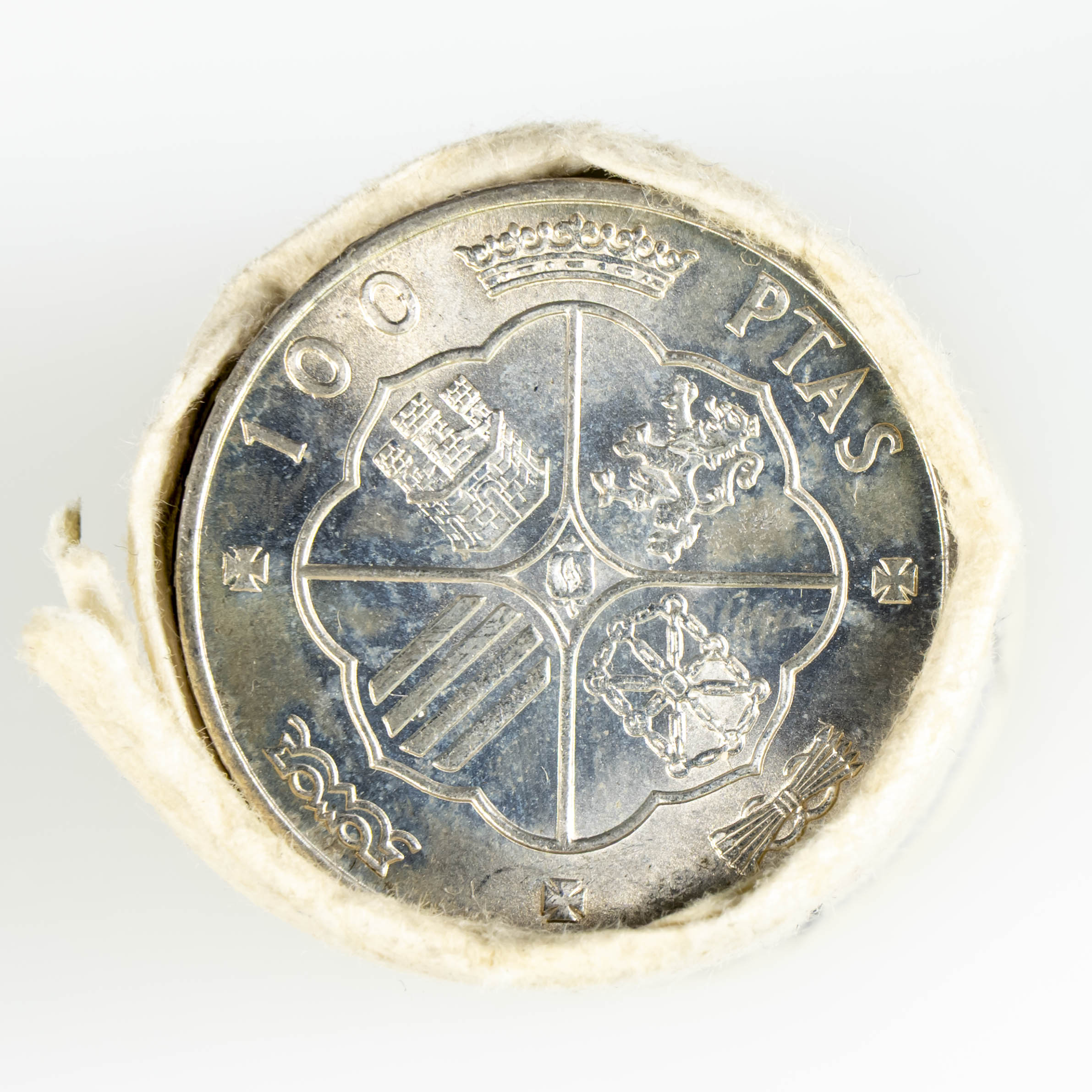 ESTADO ESPAÑOL (1936-1975). Cartucho de 100 Pesetas de 1966 *67. Cartucho parcialmente abierto. Por el peso del mismo (452g) entendemos que debe de faltar una moneda. SC.