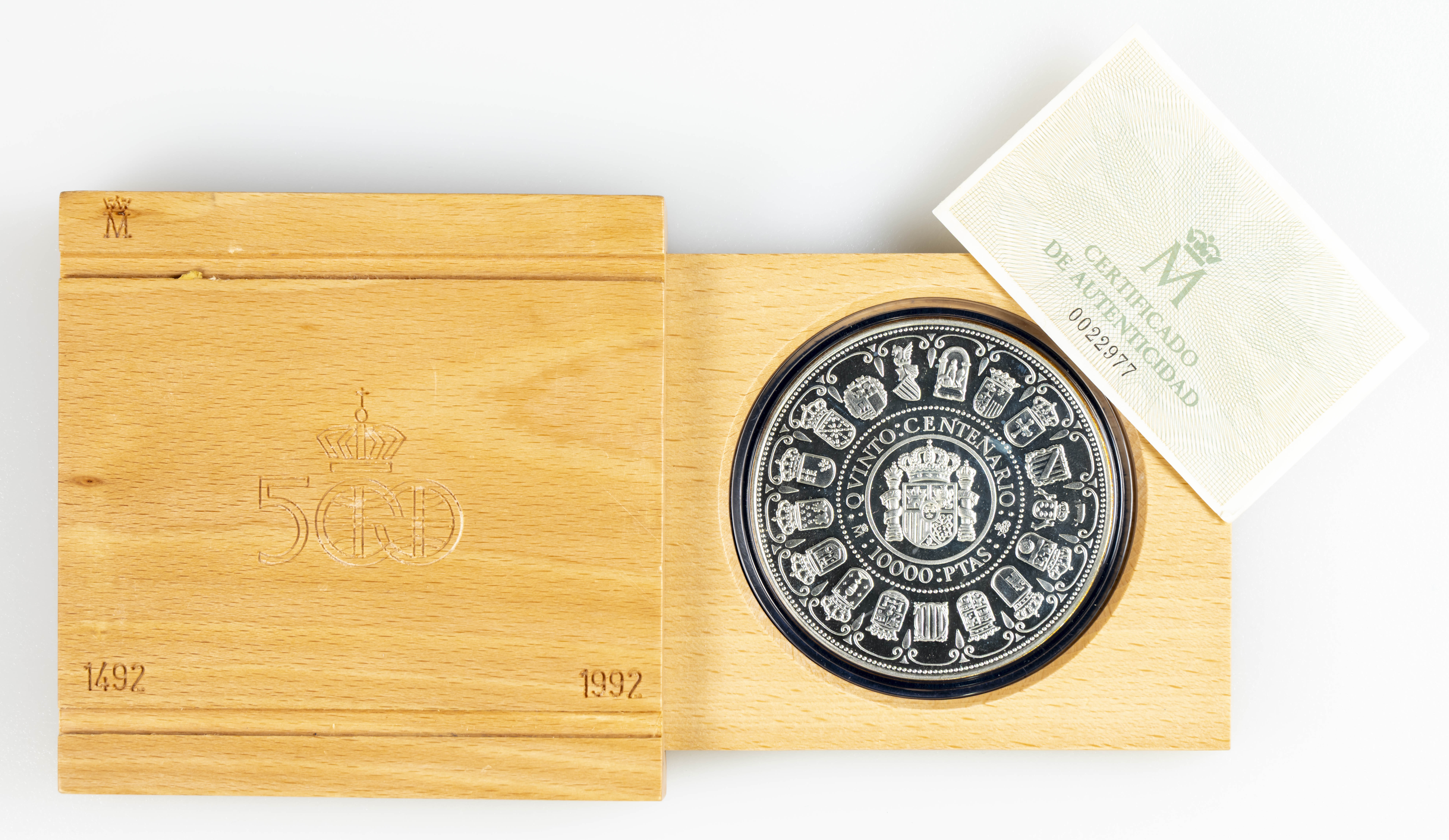 JUAN CARLOS I (1975-2014). 10.000 Pesetas. (Ar. 168,75g/73mm). 1989. FNMT. Serie Quinto Centenario. Serie I. FDC. Incluye estuche original y certificado de autenticidad.