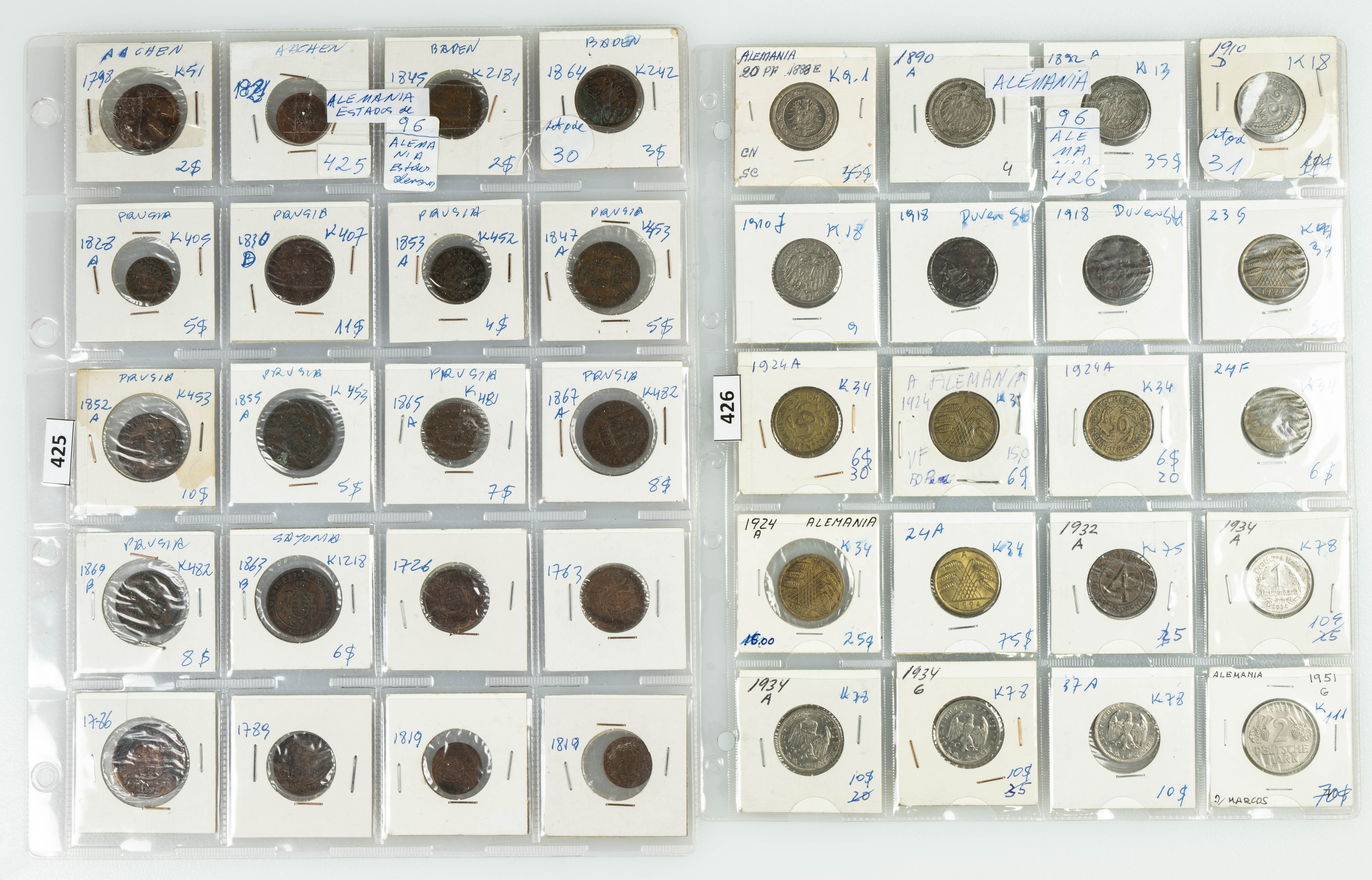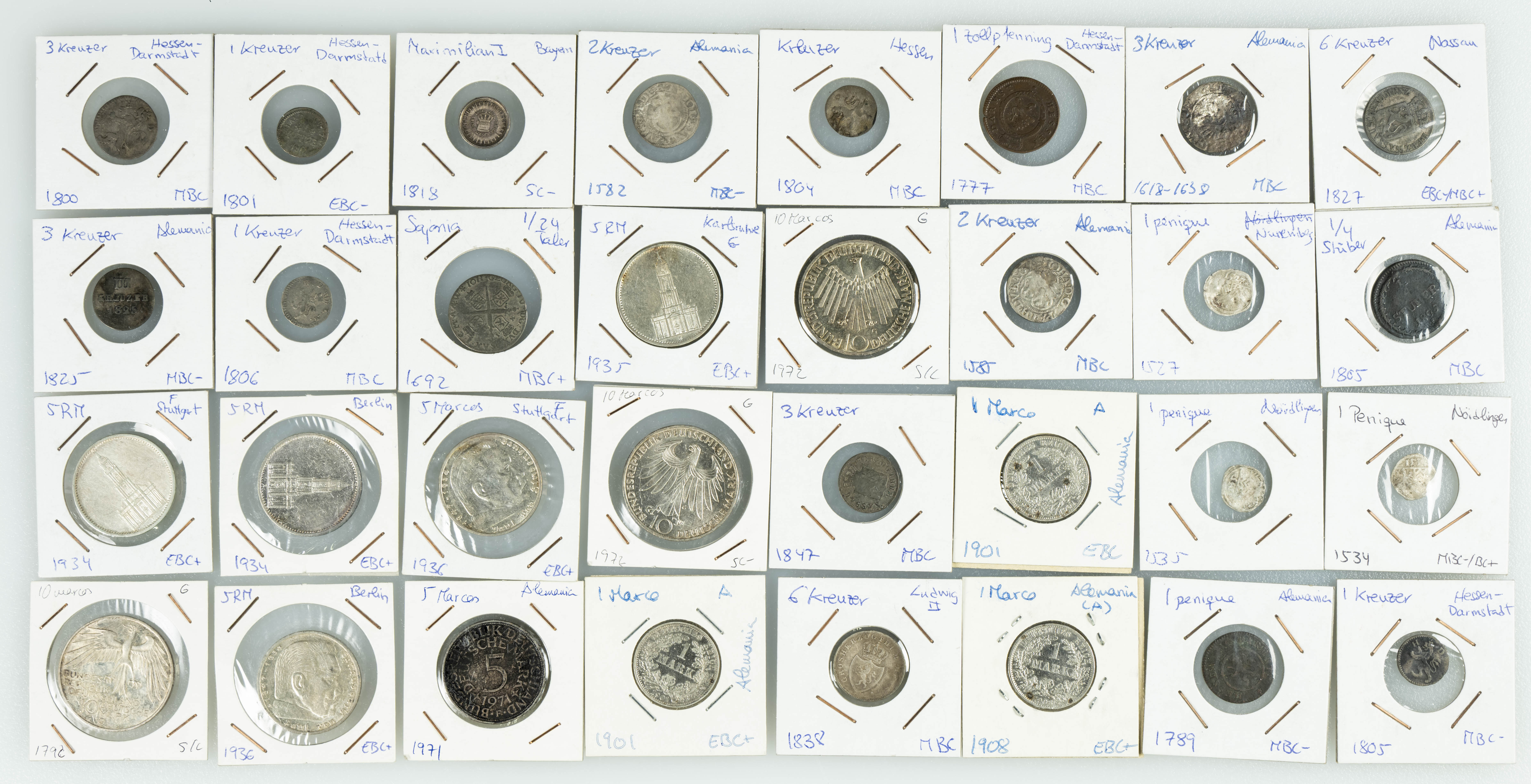 ALEMANIA. Interesante y bonito conjunto formado por alrededor de 70 monedas acuñadas desde la época del Imperio Austro-Húngaro y Estados Alemanes hasta el último tercio del siglo XX con una gran variedad de cecas, materiales (incluyendo la plata) y módulos. Diferentes estados de conservación. A EXAMINAR.