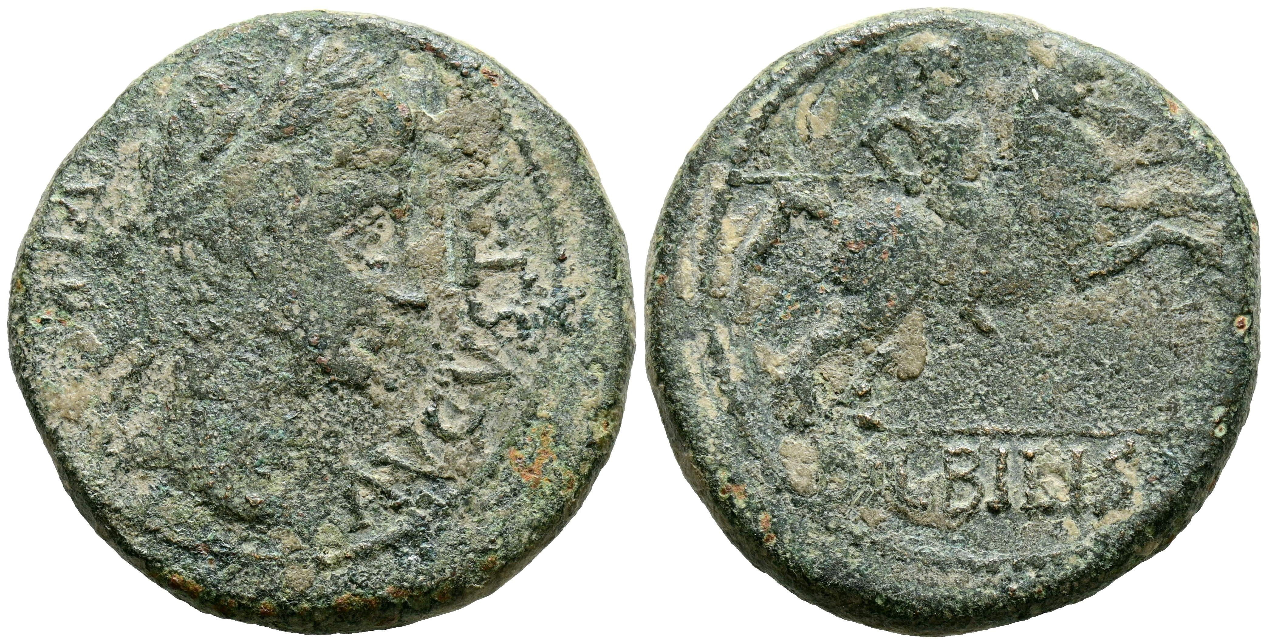 BILBILIS (Calatayud, Zaragoza). As. (Ae. 15,37g/24mm). 27 a.C.-14 d.C. (FAB-274). Anv: Cabeza de Augusto a derecha, delante: AVGVSTVS. Rev: Jinete con lanza a derecha, debajo leyenda: BILBILIS. MBC-.