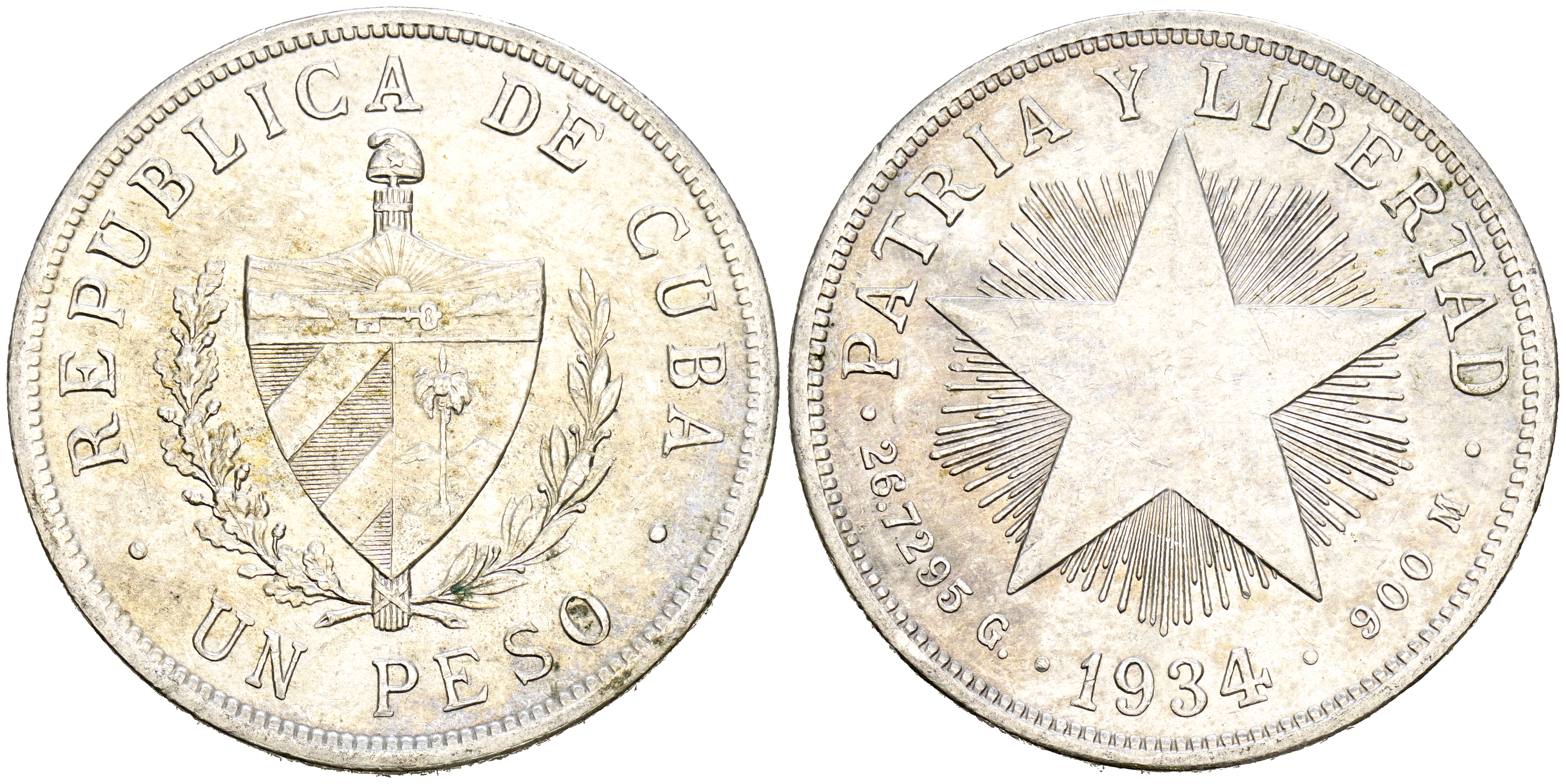 CUBA. 1 Peso. (Ar. 26,78g/38mm). 1934. (Km#15.2). MBC+.