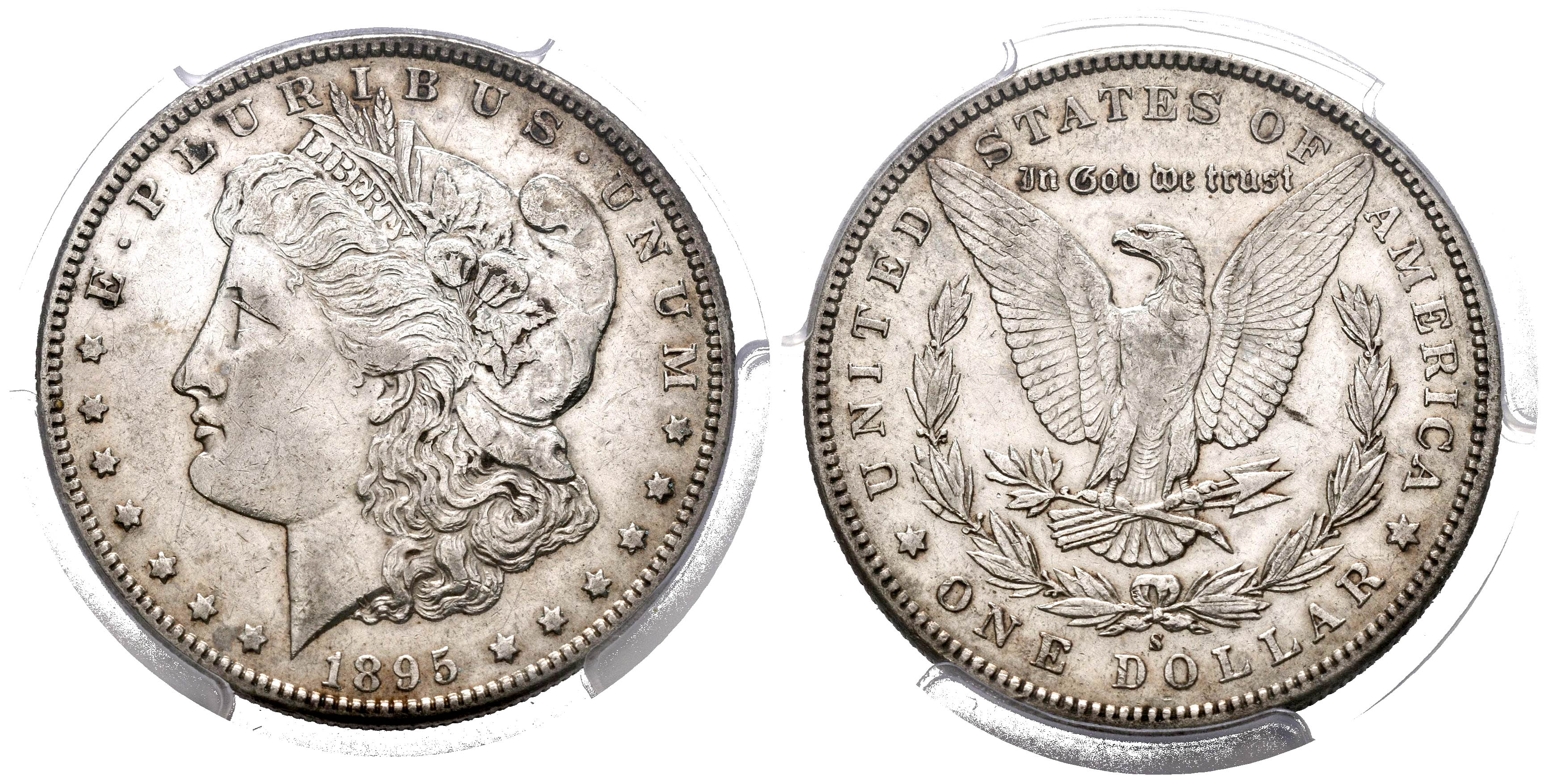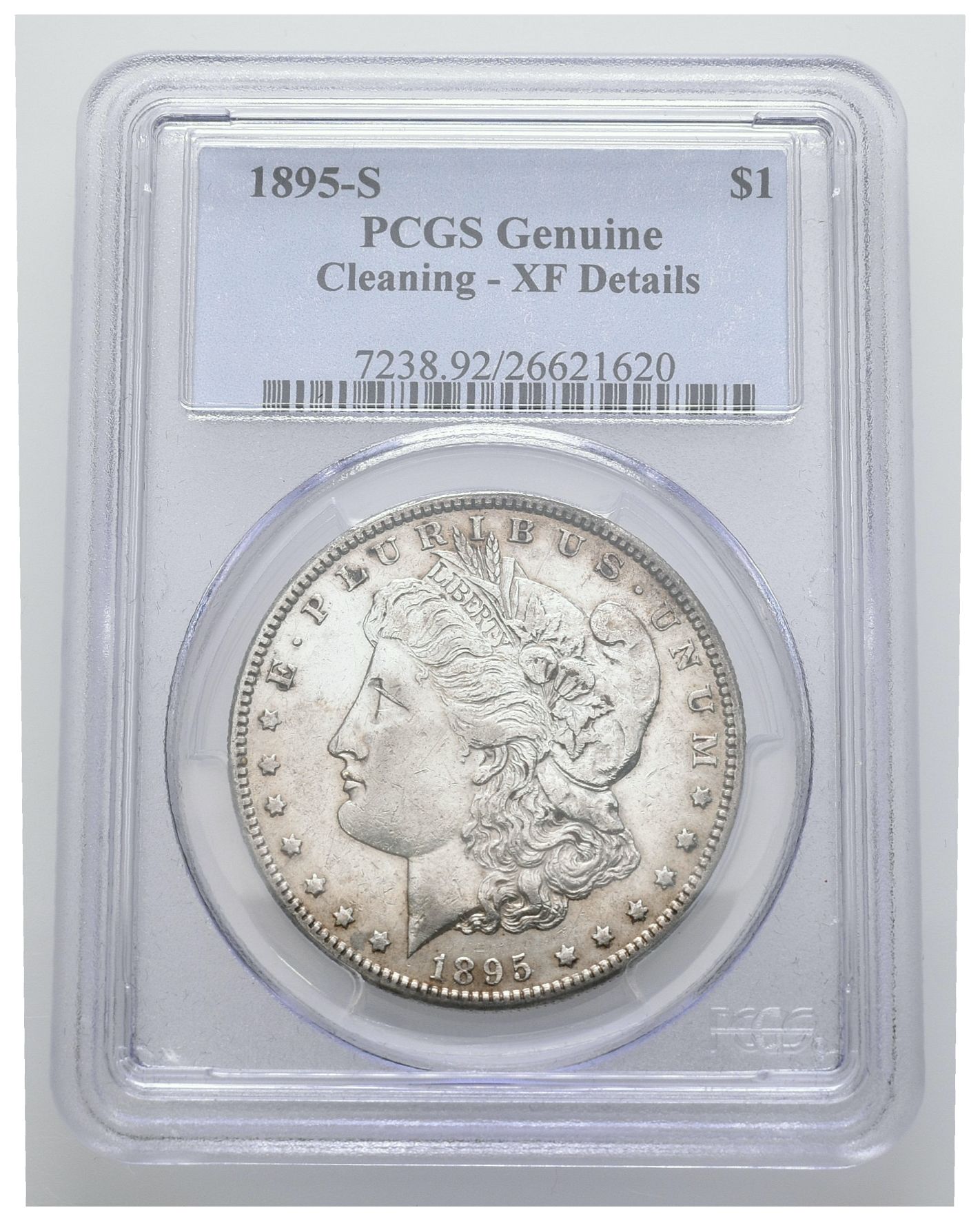 ESTADOS UNIDOS. 1 Dollar (Ar. 26,73g/38mm)*. 1895. San Francisco S. (Km#110). Limpiada Encapsulado por PCGS XF Details. *Peso y medida teórico.