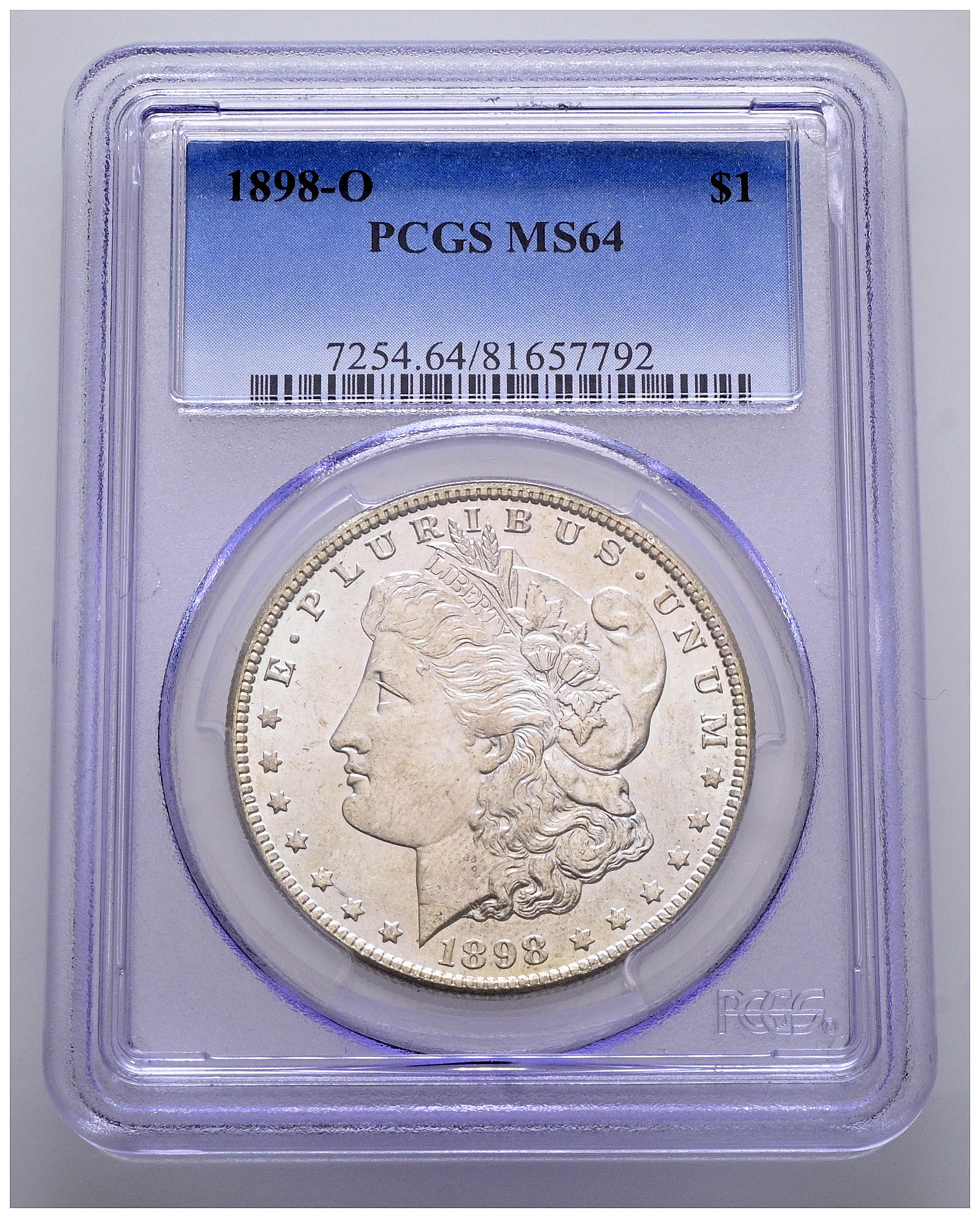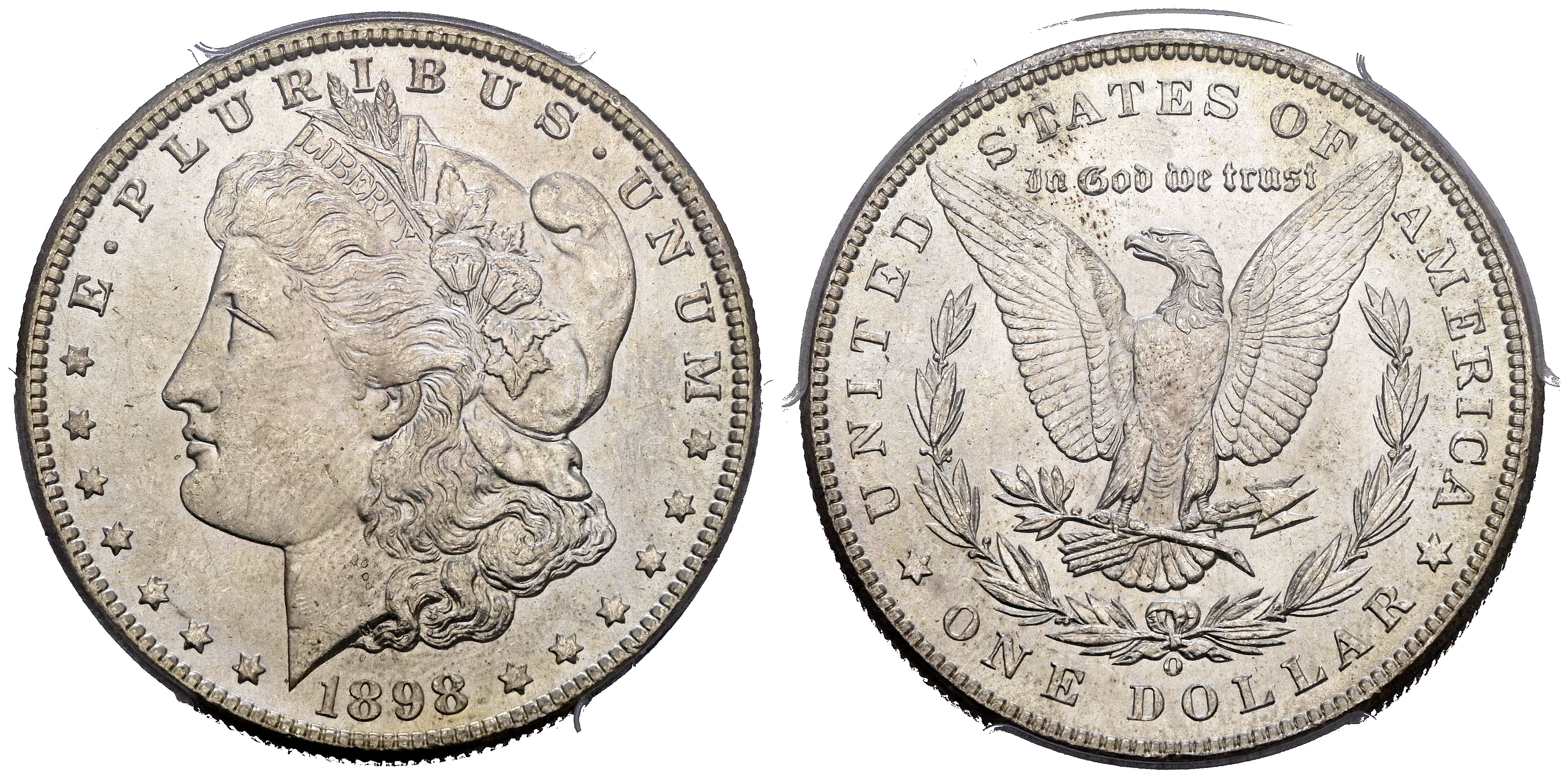 ESTADOS UNIDOS. 1 Dollar. (Ar. 27,00g/38mm)*. 1898. Nueva Orleans. (Km#110). Encapsulado por PCGS MS 64. *Peso y medidas teóricos.