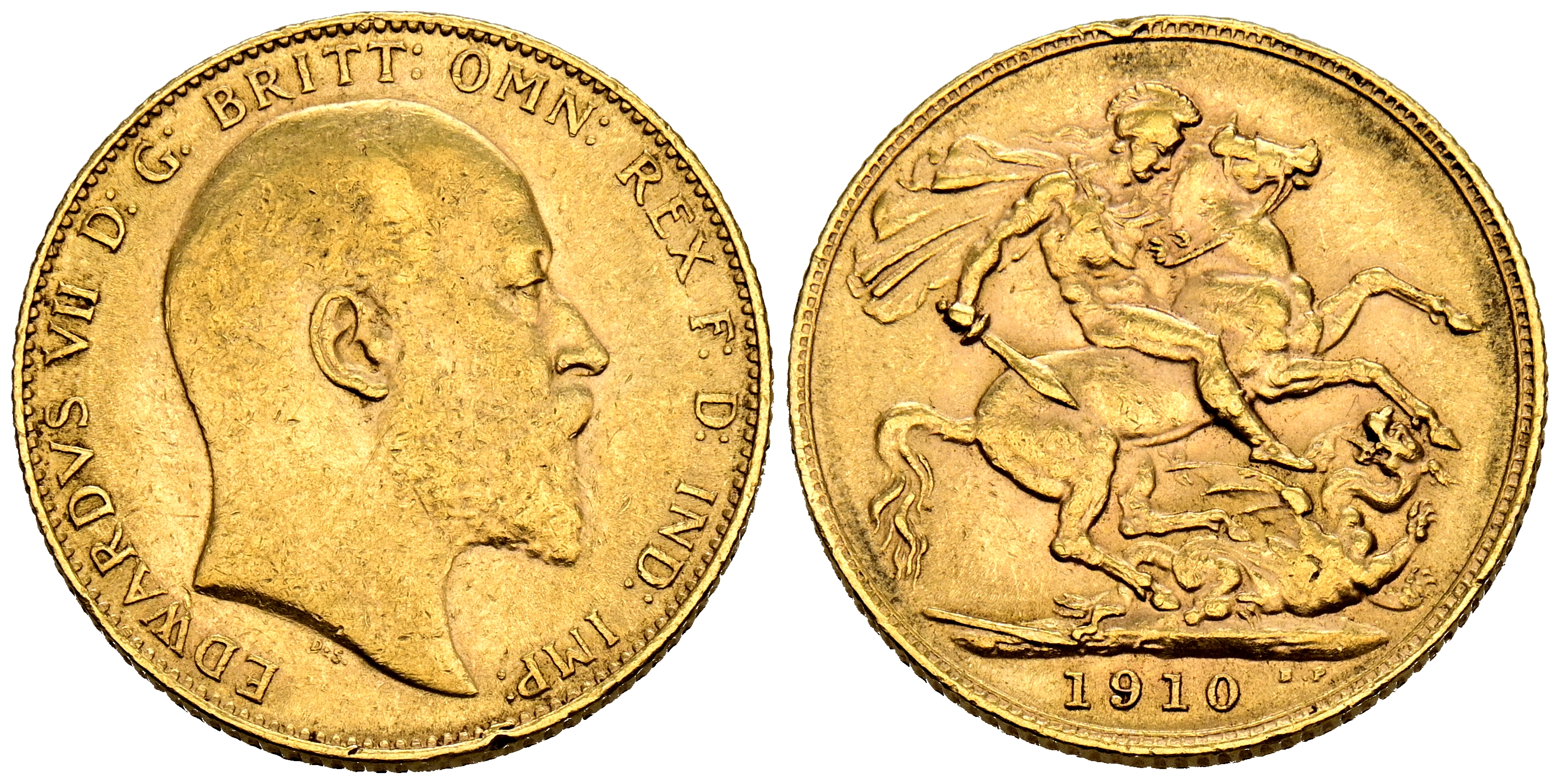 GRAN BRETAÑA, Eduardo VII (1901-1910). Soberano. (Au. 7,97g/22mm). 1910. Londres. (Km#805). MBC.