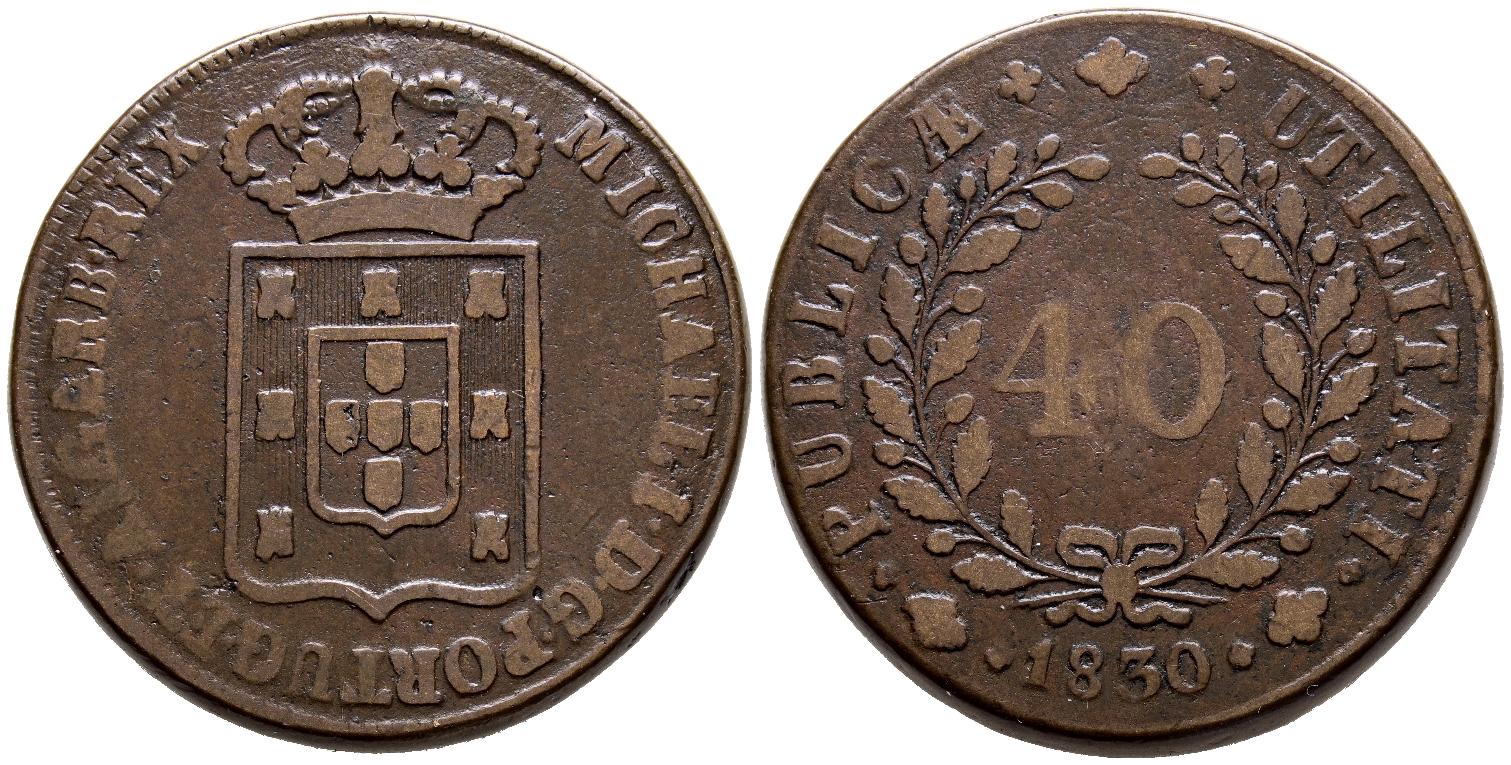 PORTUGAL, Miguel I (1828-1834). 40 Reis o Pataco. (Ae. 32,26g/35mm). 1830. (Gomes 04.05). MBC-.