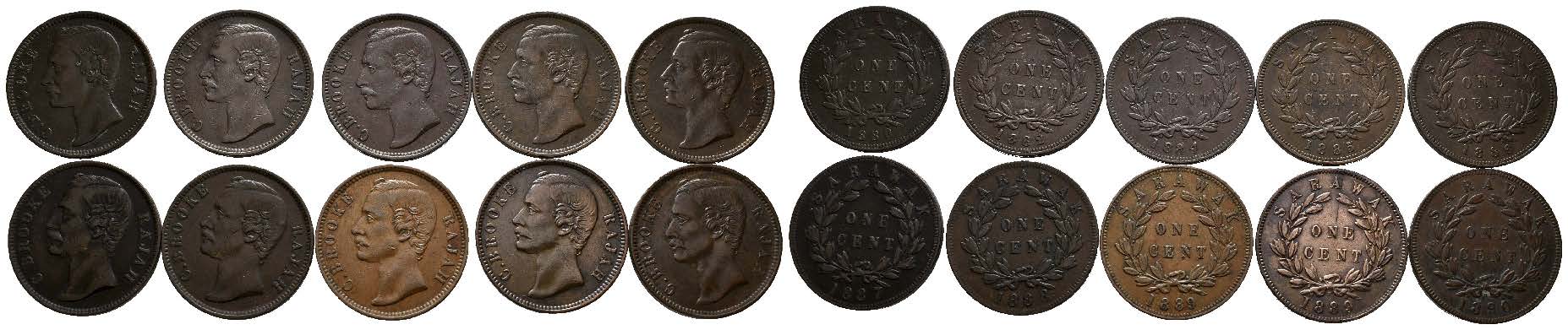 SARAWAK (Estado de Malasia). Magnífica colección formada por 65 monedas acuñadas entre 1863 y 1927. Durante este periodo encontraremos monedas acuñadas a nombre de tres Rajah´s diferentes: Sir James Brooke, Sir Charles Johnson Brooke y Sir Charles Vyner Brooke. Los módulos representados van desde los cotizados 1/4 de Cent, en cobre, hasta los 50 Cents acuñados en plata, pasando por una gran cantidad de divisores. Las conservaciones son diversas, destacando algunas piezas en alto nivel de conservación. El conjunto incluye una reproducción de época del cotizado token de época de 1841. A EXAMINAR.