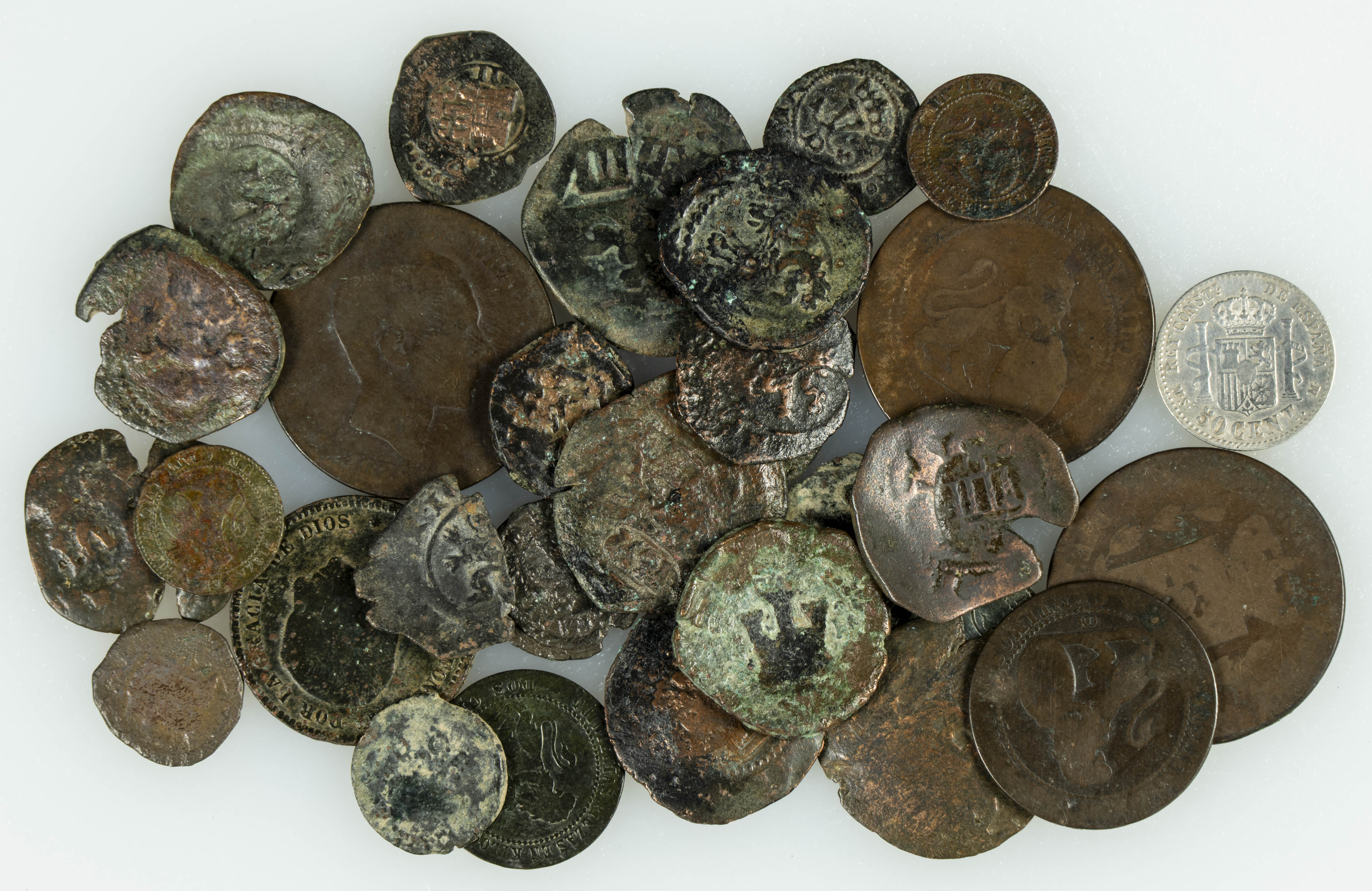 MONARQUIA ESPAÑOLA y CENTENARIO DE LA PESETA. Interesante conjunto formado por 30 monedas que abarcan una amplia cronología. Diferentes reyes, módulos, medidas y estados de conservación. A EXAMINAR.