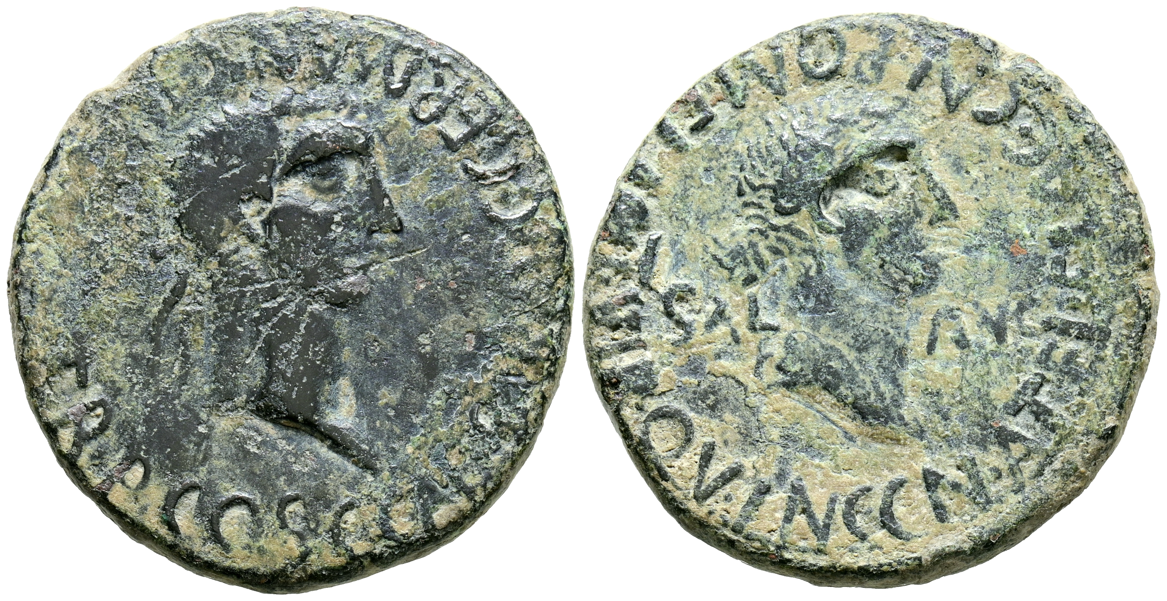 CARTAGONOVA (Cartagena, Murcia). As. (Ae. 11,22/28mm). 37-41 d.C. (FAB-613). Anv: Cabeza de Calígula laureada a derecha, alrededor leyenda: C CAESAR AVG GERMANICA IMP P M TR P COS. Rev: Cabeza laureada de Cesonia, a los lados: SAL-AVG, alrededor leyenda: CN ATEL FLAC CN POM FLAC II VIR. BC+/MBC-.