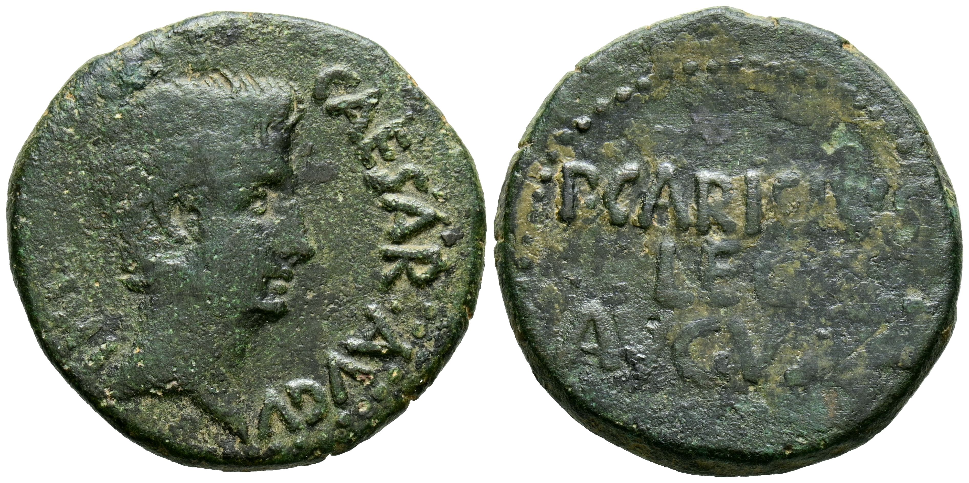EMERITA AUGUSTA (Mérida, Badajoz). As. (Ae. 10,78g/29mm). 27 a.C. (FAB-986). Anv: Cabeza de Augusto a derecha, alrededor leyenda: CAESAR AVGVS TRIBVN POTEST. Rev: Leyenda: P CARISIVS LEG AVGVSTI. MBC-.