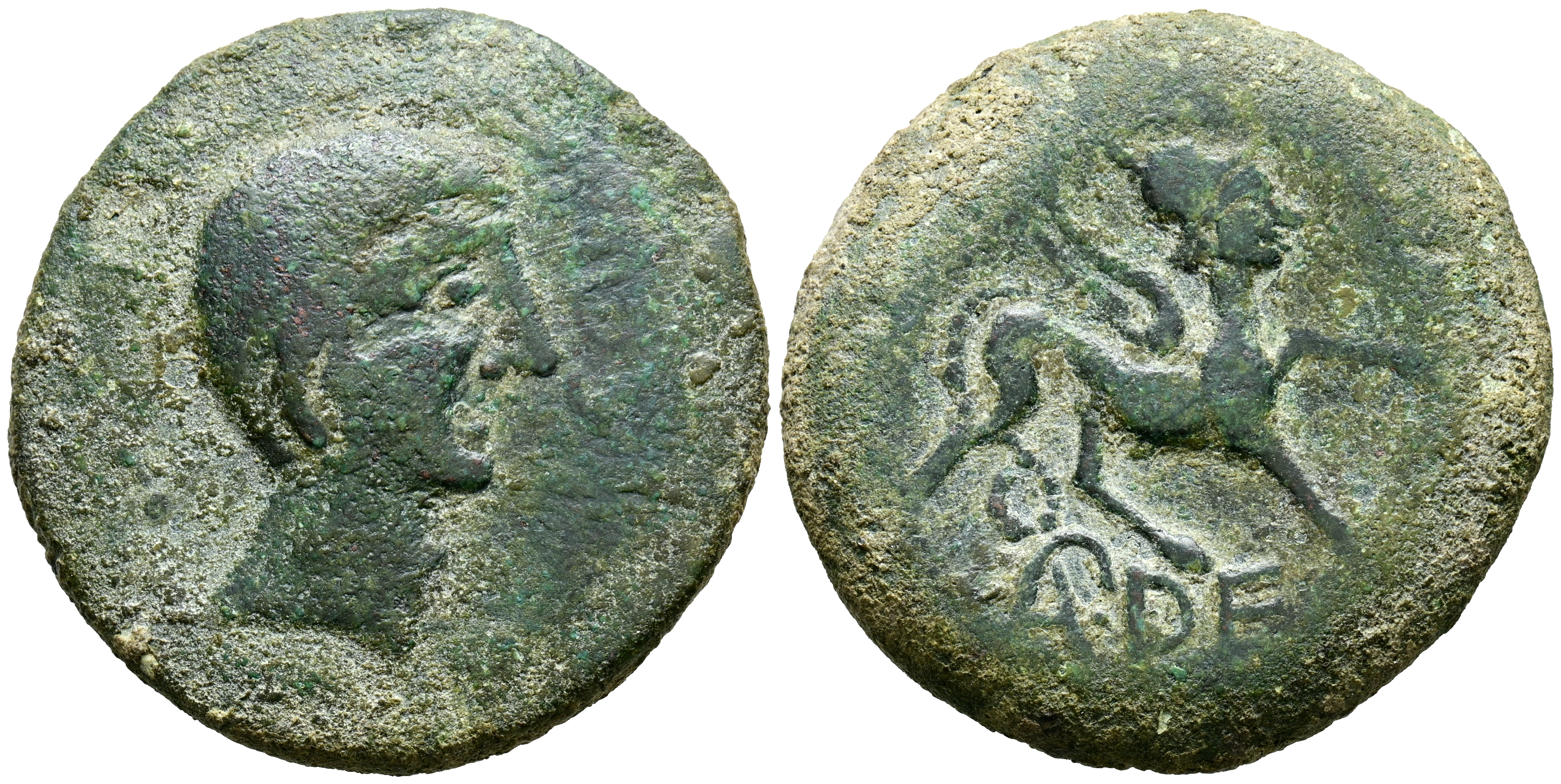 URSONE (Osuna, Sevilla). As. (Ae. 26,40g/33mm). 50 A.C. (FAB-2498). Anv: Cabeza masculina diademada a derecha, delante leyenda: VRSONE. Rev: Esfinge a derecha, debajo leyenda: L AP DEC Q F. MBC-.