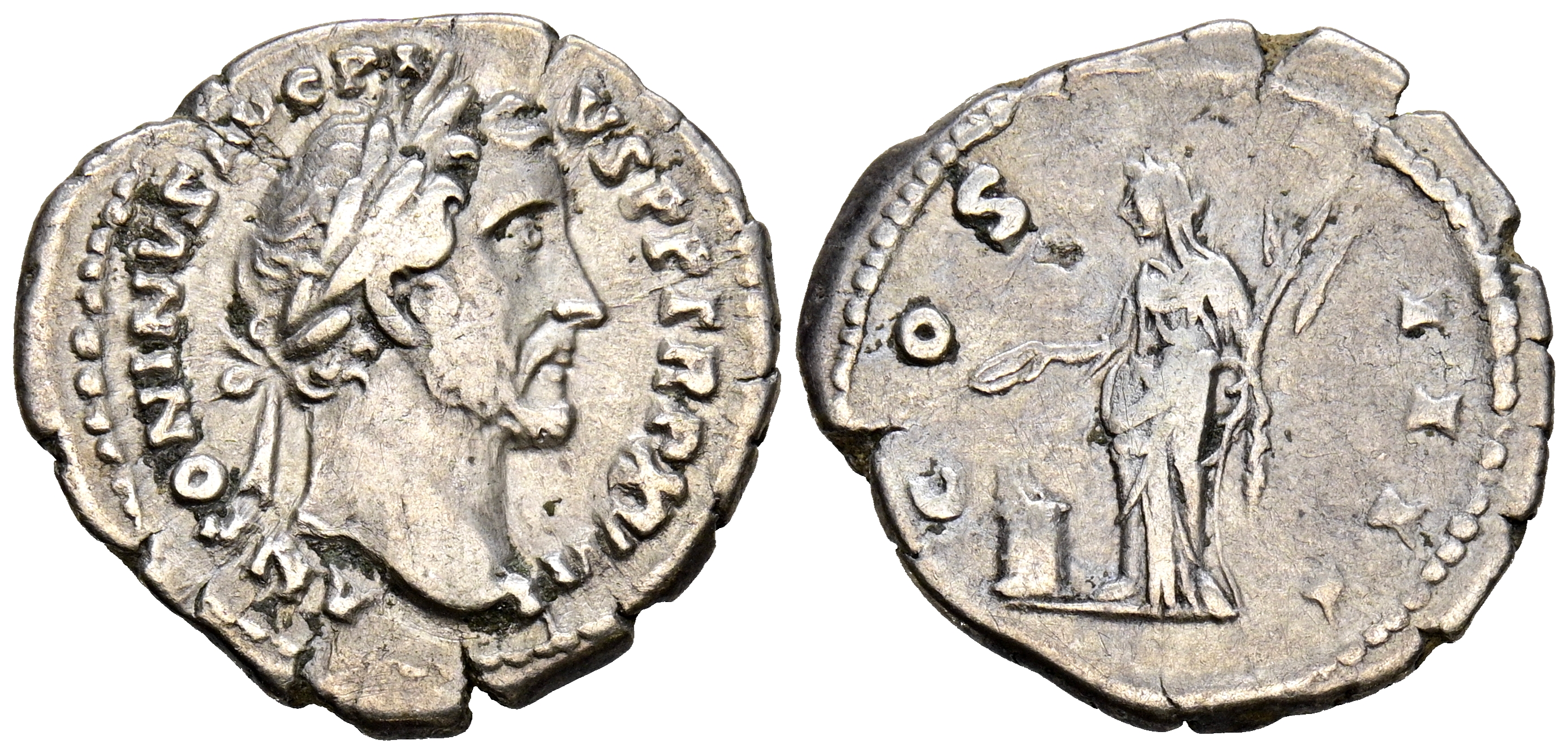 ANTONINO PIO. Denario. (Ar. 2,77g/19mm). 154-155 d.C. Roma. (RIC 238). Anv: Cabeza laureada de Antonino Pío a derecha, alrededor leyenda: ANTONINVS AVG PIVS P P TR P XVIII. Rev: Vesta estante a izquierda portando palladium y patera sobre altar, alrededor leyenda: COS IIII. MBC.