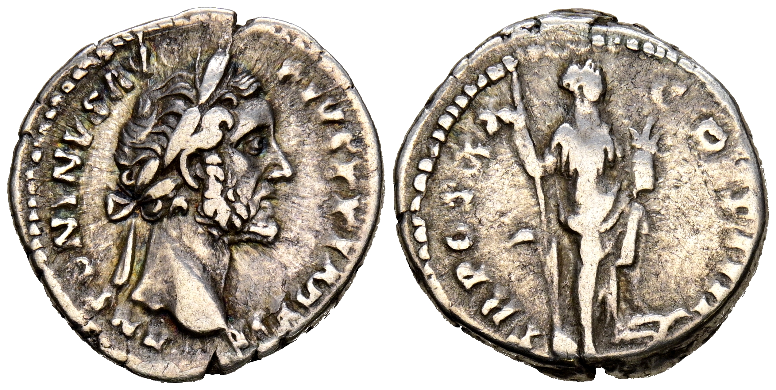 ANTONINO PIO. Denario. (Ar. 3,39g/18 mm). 157 d.C. Roma. (RIC 260). Anv: Cabeza laureada de Anonino Pío a derecha, alrededor leyenda: ANTONINVS AVG – PIVS P P IMP II. Rev: Anona a la izquierda portando remo sobre modrio y con el pie izquierdo apoyado en una proa, alrededor leyenda: TR POT XX COS IIII. MBC.