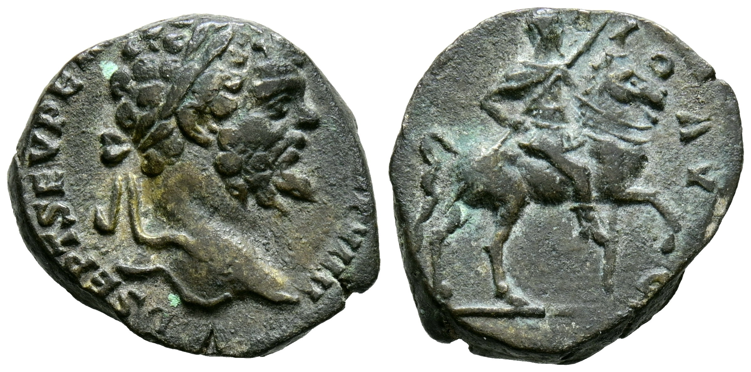 SEPTIMIO SEVERO. Denario. (Ar. 2,73g/18mm). 196-197 d.C. Roma. (RIC 91). Anv: Cabeza laureada de Septimio Severo a la derecha, alrededor leyenda: L SEPT SEV PERT AVG IMP VIII. Rev: Septimio Severo a caballo a la derecha, portando una lanza, alrededor leyenda: PROFECTIO AVG. MBC-. Escasa.
