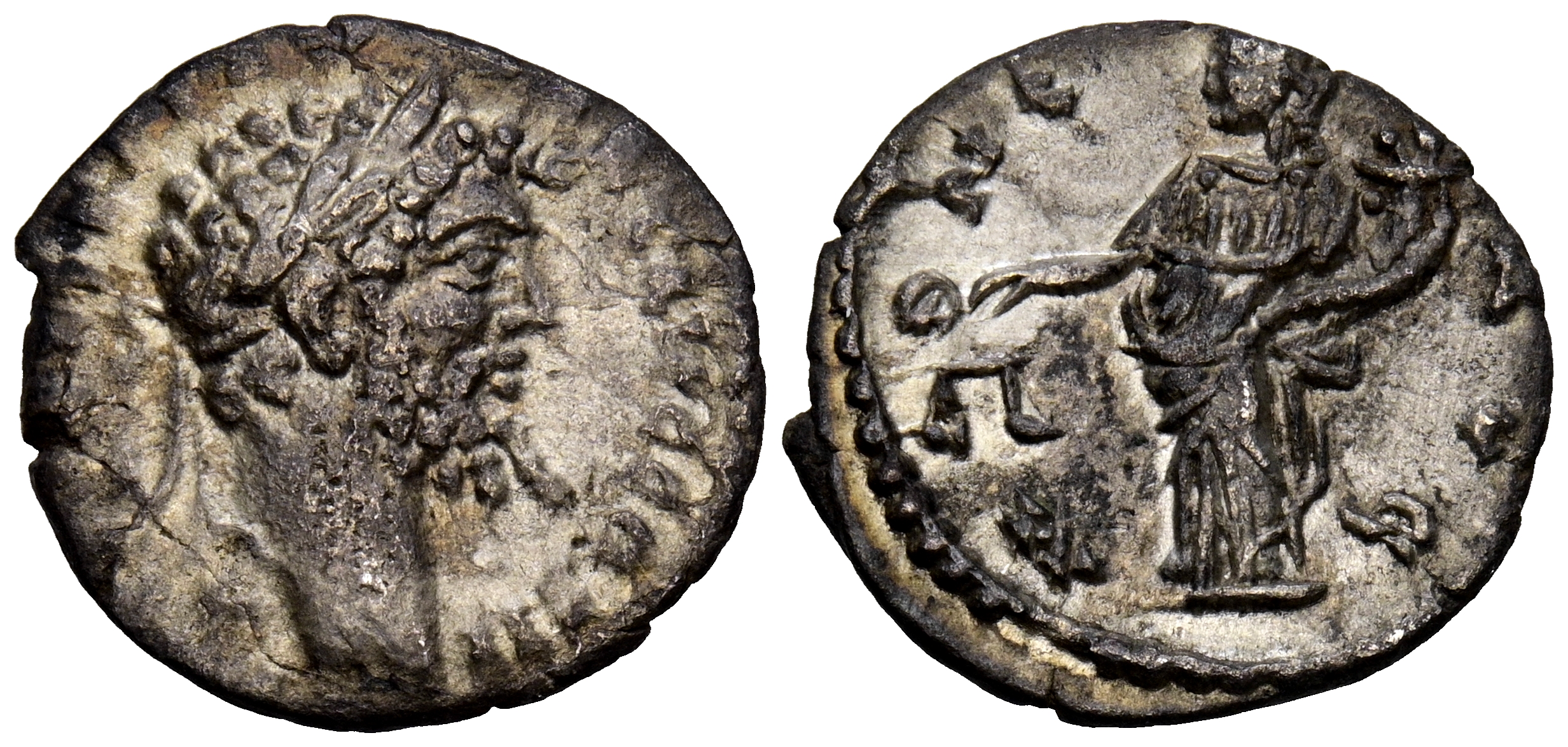 SEPTIMIO SEVERO. Denario. (Ar. 1,22g/17mm). 194-195 d.C. Emesa. (RIC 411a). Anv: Cabeza laureado de Septimio Severo a derecha, alrededor leyenda: IMP CAE L SEP SEV PERT AVG COS II. Rev: Moneta estante a izquierda portando escalas y cornucopia, alrededor leyenda: MONET AVG. MBC/MBC+.